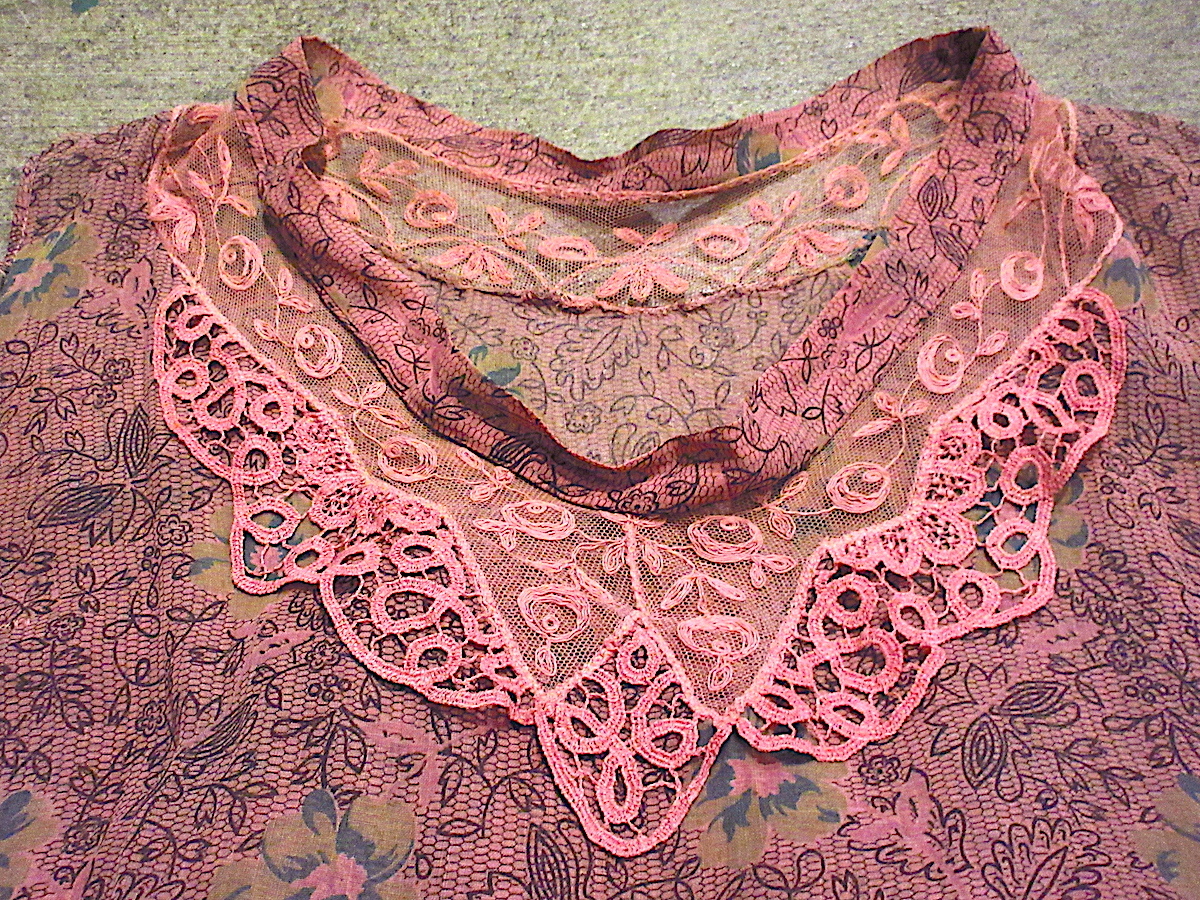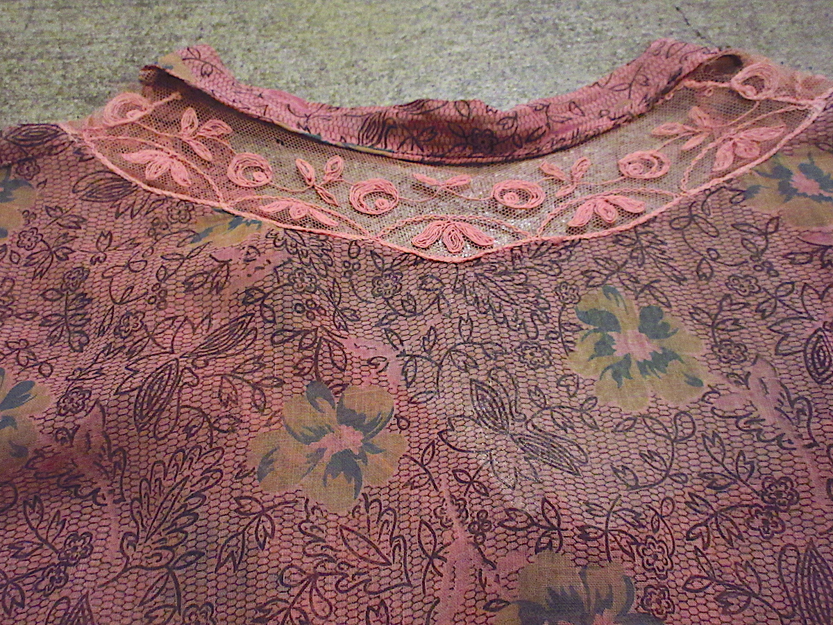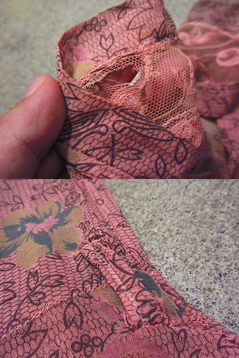 1920's~1930's 花 総柄 レース付き シースルー ノースリーブワンピース