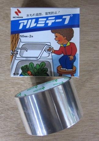 テープ厚:0.12mm。材質:アルミ箔、アクリル系粘着剤、紙(剥離紙)。巾×長:50mm×2m。。。。 |