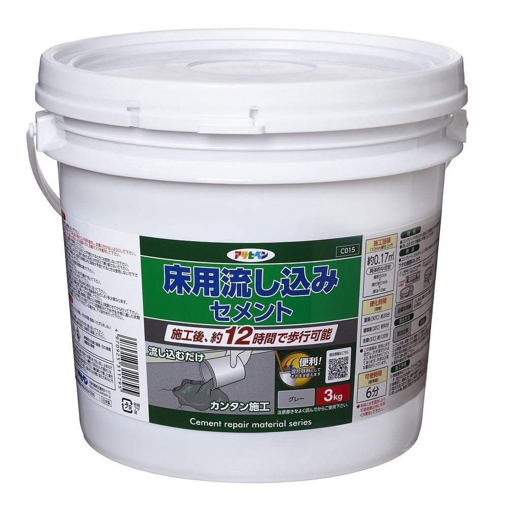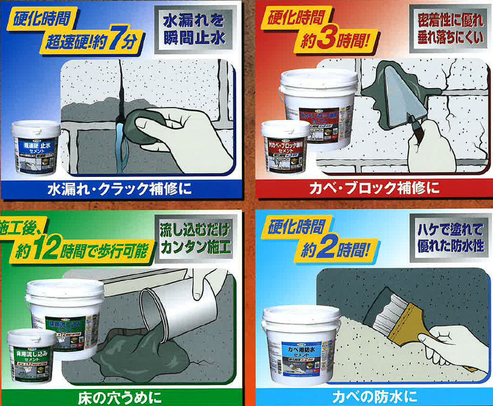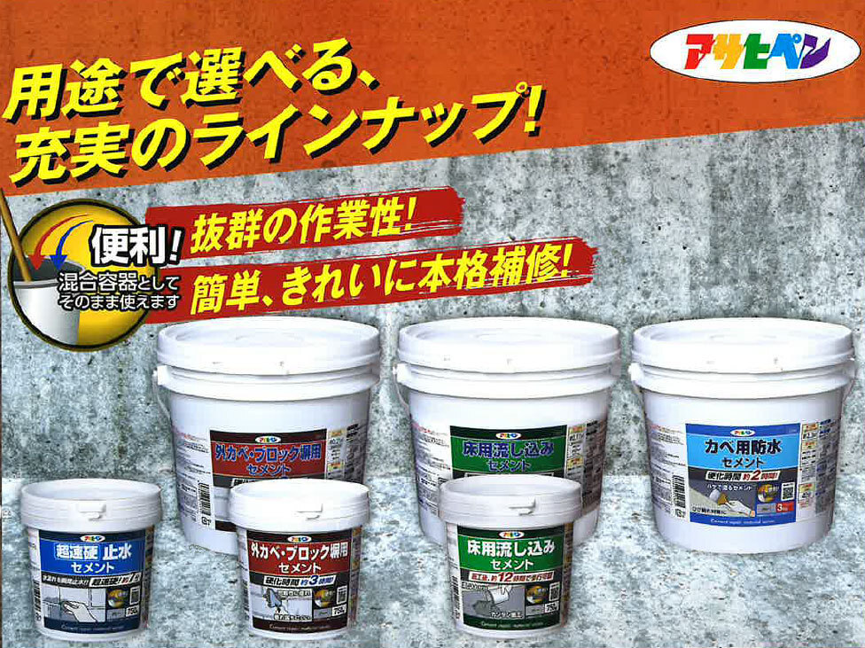 コンクリート、モルタル、レンガなどの床のくぼみや穴の補修に。