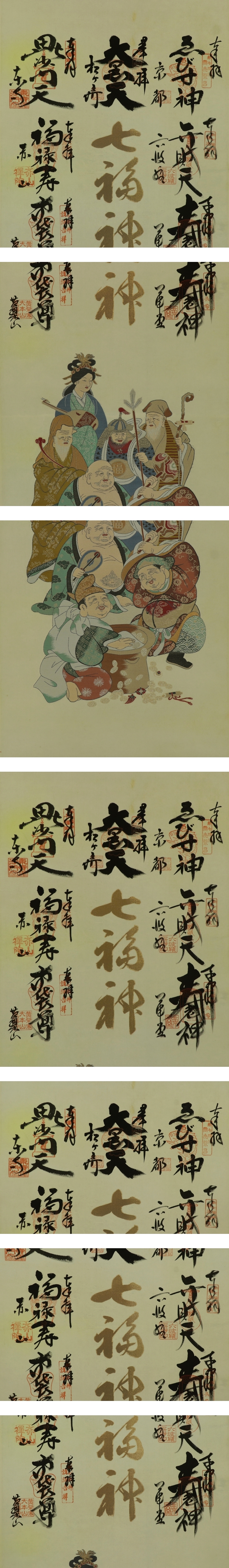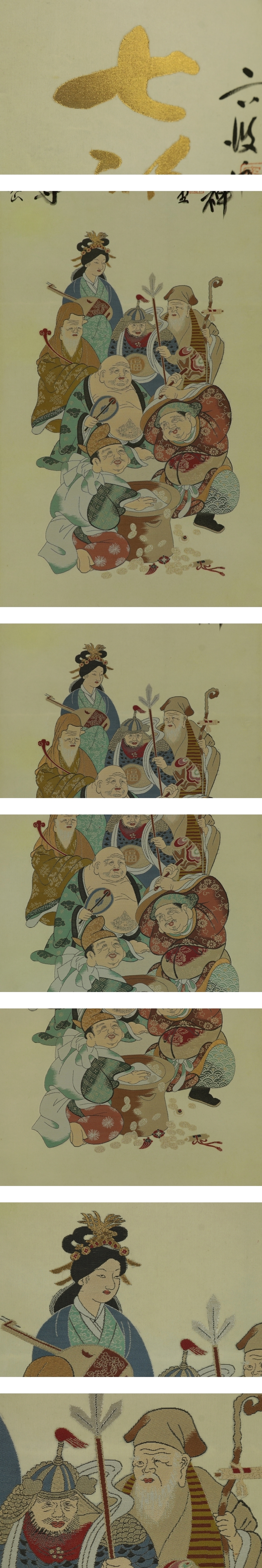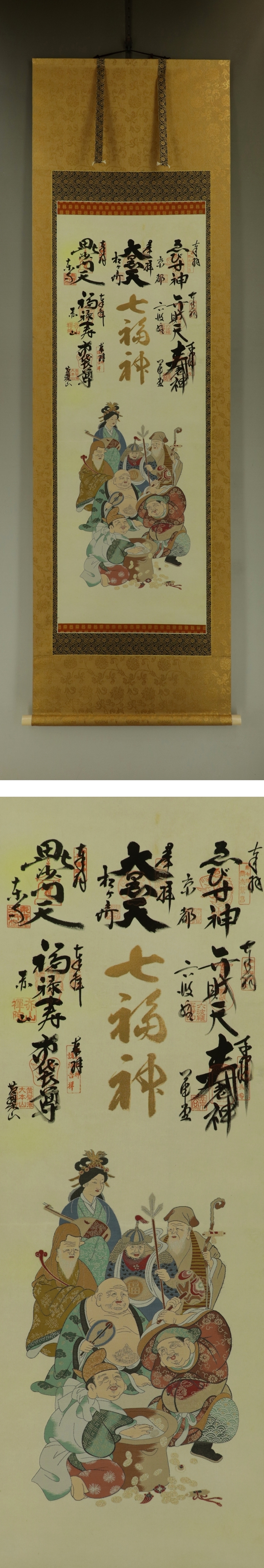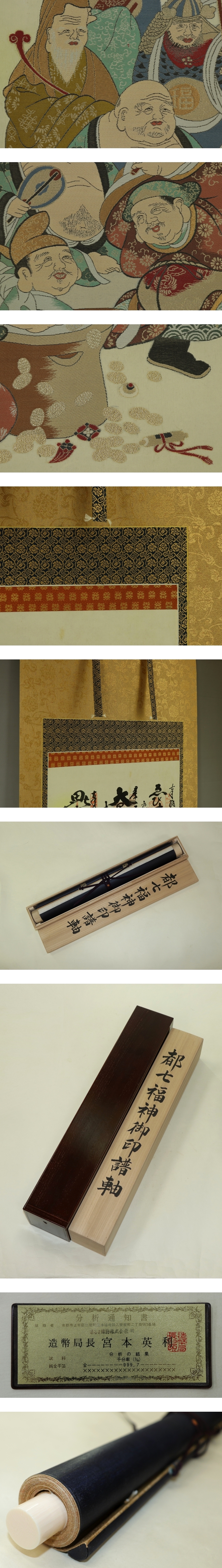 №2405009【肉筆】京都七福神集印軸【本金刺繍 高級表装】◆絹本◆合箱◆二重箱◆太巻掛軸 | |