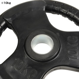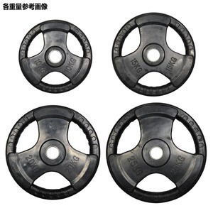 ベンチプレス、スクワットなどで使用するバーベルシャフト用のラバープレートです。