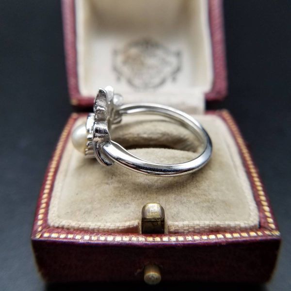 AVON パール装飾 植物モチーフ ヴィンテージ リング シルバートーン フローラル 指輪 上品 コスチュームジュエリー Y17-Q