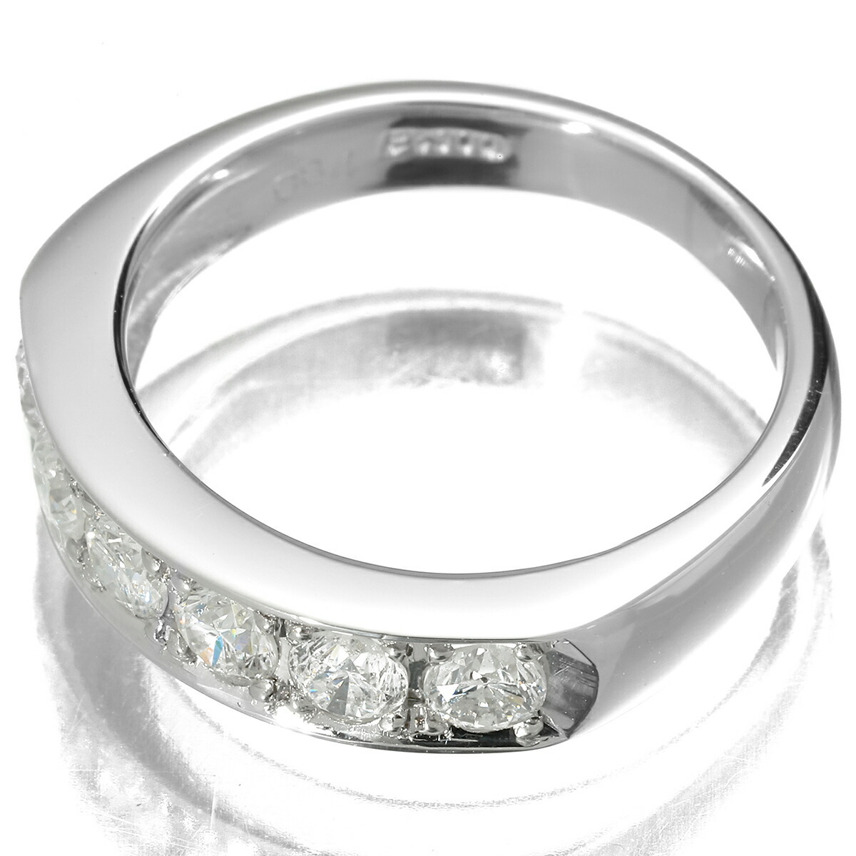 シンプルなデザインのプラチナリング。6石の配列されたダイヤモンドが美しく光り輝きます。どんなデザインのお洋服にも合わせやすいので普段使いに最適です。