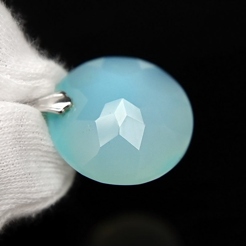 半透明の淡いブルーが可愛らしいシーブルーカルセドニーのペンダントトップです。