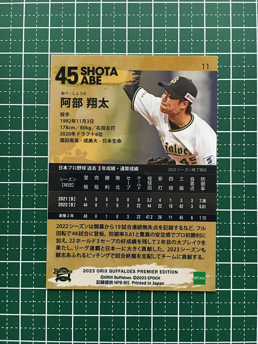EPOCH 2023 オリックス・バファローズ プレミアエディション ベースボールカード