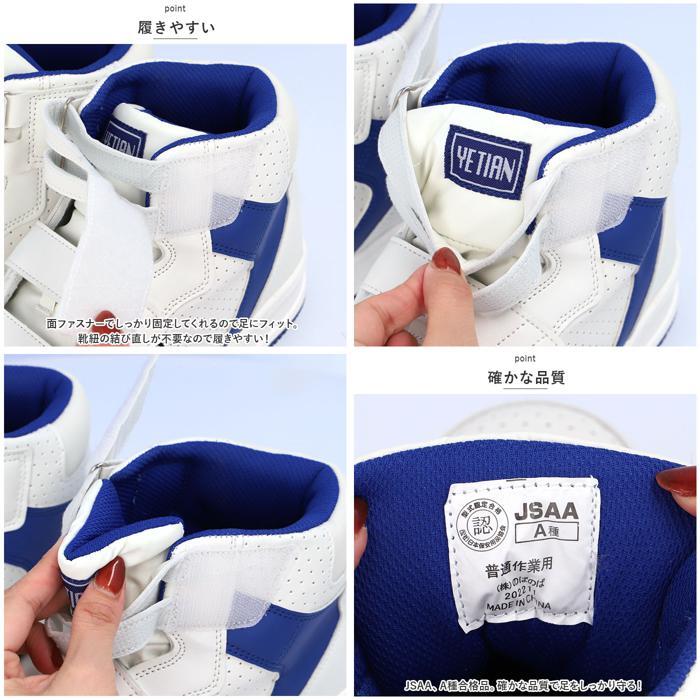 | 商品説明 | ・・くるぶしまでしっかりガード!安心構造の鋼製先芯!「YETIAN セーフティースニーカー」が登場! ・【安心の鋼製先芯】 ・足をしっかりガードしてくれる鋼製先芯なので、現場作業などで大活躍! ・【ミドルカット】 ・くるぶしまであるミドルカットタイプ!安定感があるのも嬉しいポイント! ・【ムレを軽減】 ・アッパー部分はメッシュ加工を施しているので、ムレを軽減。靴内を快適に◎ ・【履きやすい】 ・面ファスナーでしっかり固定してくれるので足にフィット。靴紐の結び直しが不要なので履きやすい! ・【シンプルデザイン】 ・スニーカータイプで飽きのこないシンプルなデザインなので、作業時はもちろん普段使いもOK! |