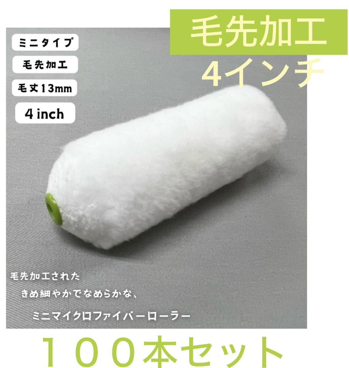 毛先加工タイプ ミニスモール マイクロファイバー ローラー 4インチ 毛丈13mm 100本セット/ 即決 413-100