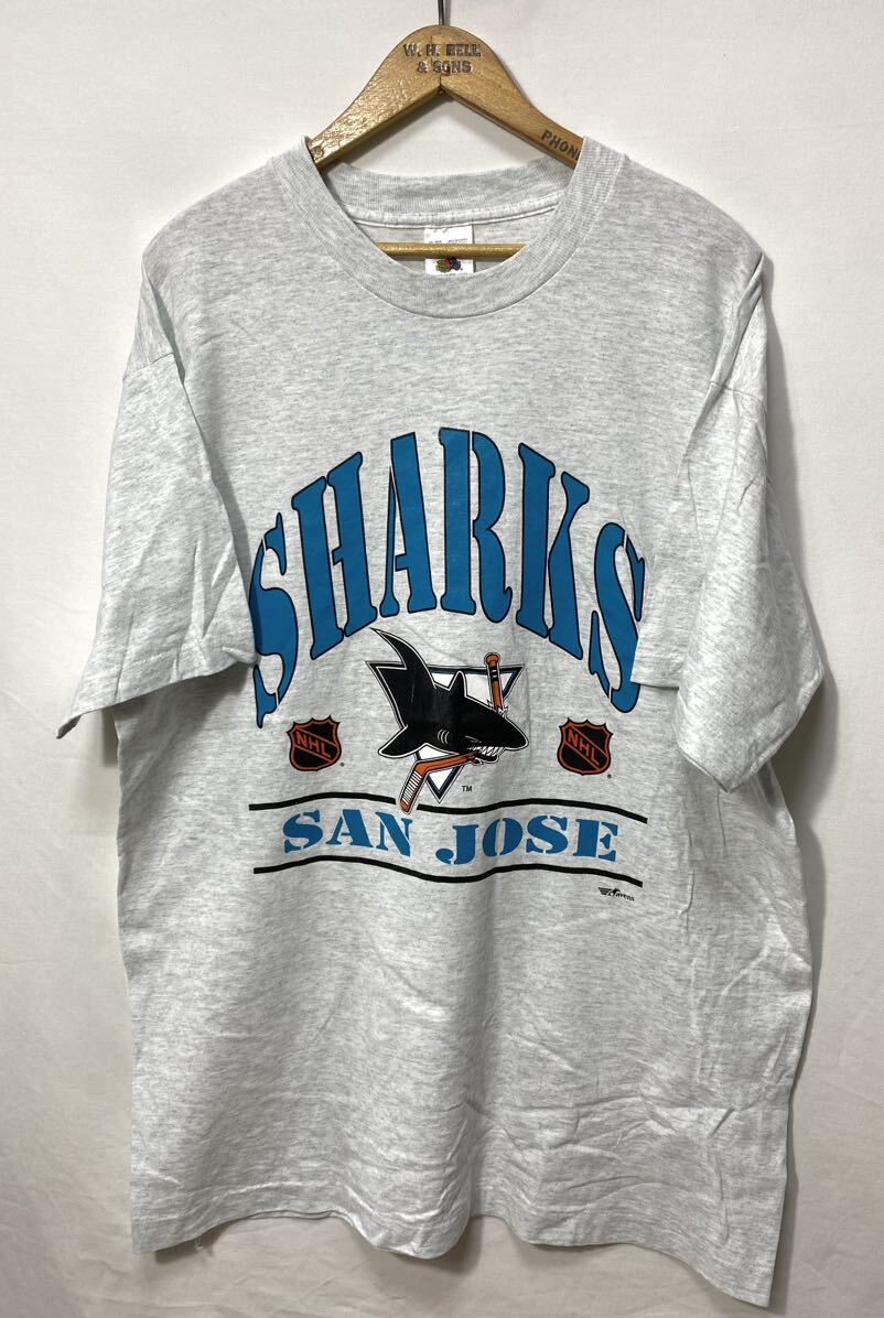 ■ 90s 90年代 ビンテージ FRUIT OF THE LOOM NHL San Jose Sharks Tシャツ サイズXL グレー 古着 アイスホッケー サンノゼ シャークス ■