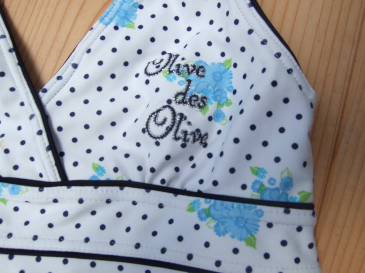 *美品!キッズ女の子ドット柄オリーブデオリーブワンピース水着130センチ*