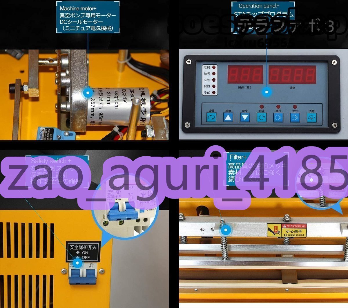 商品説明 たくさんの展出品の中に弊店の製品をご覧頂き、ありがとうございます。 商品説明★状態:新品未使用 【亜鉛メッキ材】亜鉛メッキの材料を使って加工し、腐食に強く、さびにくく、耐久性が高いです。【マザーボードとコントロールパネル】良いマザーボードを使用し、安定したパフォーマンス、使用寿命が長いです。パネルはデザインはシンプルで、より簡単な操作。【安全保護スイッチ】漏電防止設計、操作と使用の安全を保障する。【真空計装備】専用の真空計を装備しているため、真空状態が一目でわかります。インフレータブル/フットペダルインターフェースも装備しているので、より便利な操作。【3つのモード+カウント機能】真空+シール、単独のシールと空気充填+シール3つのモードが選択あります。カウント機能は大量の製品のシール時の数量の統計に便利です。型番:DZQ-500 TE電源電圧:110V包装速度:5-15回/分(手作業で協力する必要があります)ポンプパワー:120 Wシールパワー:950 Wサイズ:70*48*56 cm重さ:55 kgシールサイズ:500*8mm 支払詳細★Yahoo!簡単決済★入金確認後4-7営業日発送させていただきます。★追跡番号は発送連絡と一緒に送らせていただいております。□注意事項★照明やモニターによっては若干の色調の違いがございま。またお手持ちのパソコン・携帯の画面により商品のお色に若干の差がございます。ご承知した上、ご入札を宜しくお願い申し上げます。★失礼しますが、商品や取引に関するなにか質問がございましたら、入札前にご提出いただければと存じます。ご不明な点があればお気軽にご質問等下さい。★商品のサイズは採寸方法によって、若干な誤差が生じる 場合はあります。ご了承ください。★ 品質に極端なこだわりをお持ちの方、極端に神経質な方はご入札ご遠慮ください。★お客様のイメージ違いなどのご返品をお受付出来かねます。初期不良の場合、返品対応可能です。 以上、ご了承いただいた上でご入札下さいますよう、お願い致します。他にも多数出品しております。ご覧下さい。