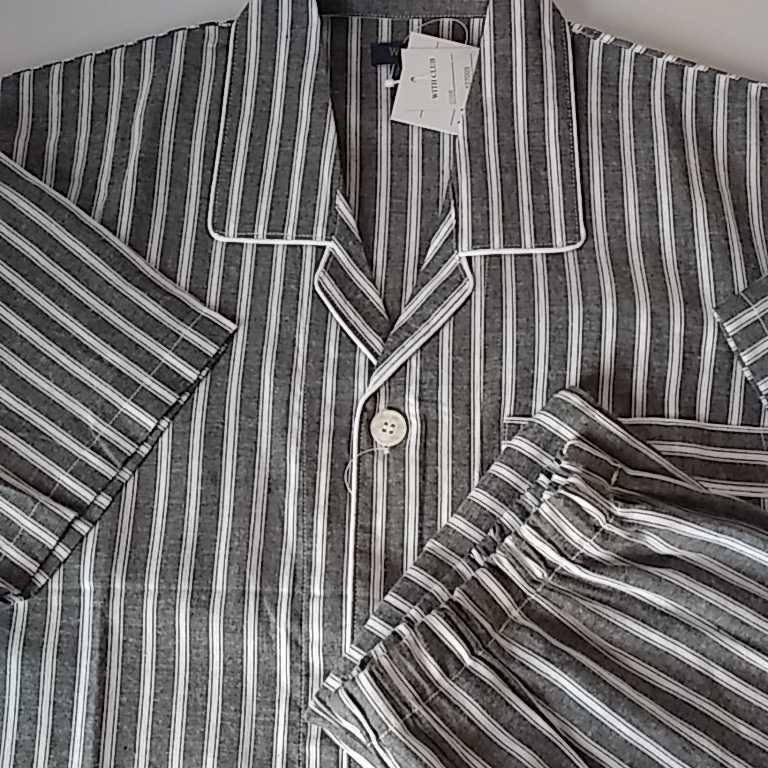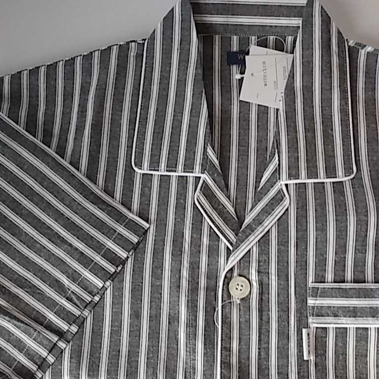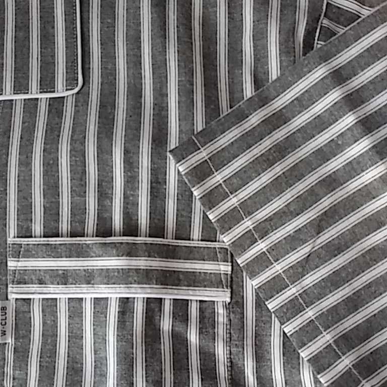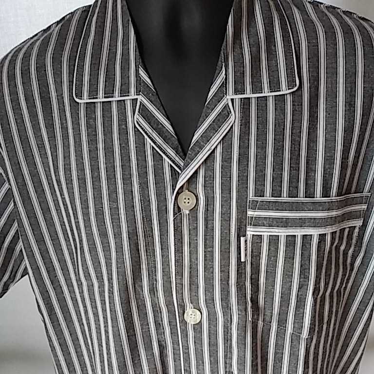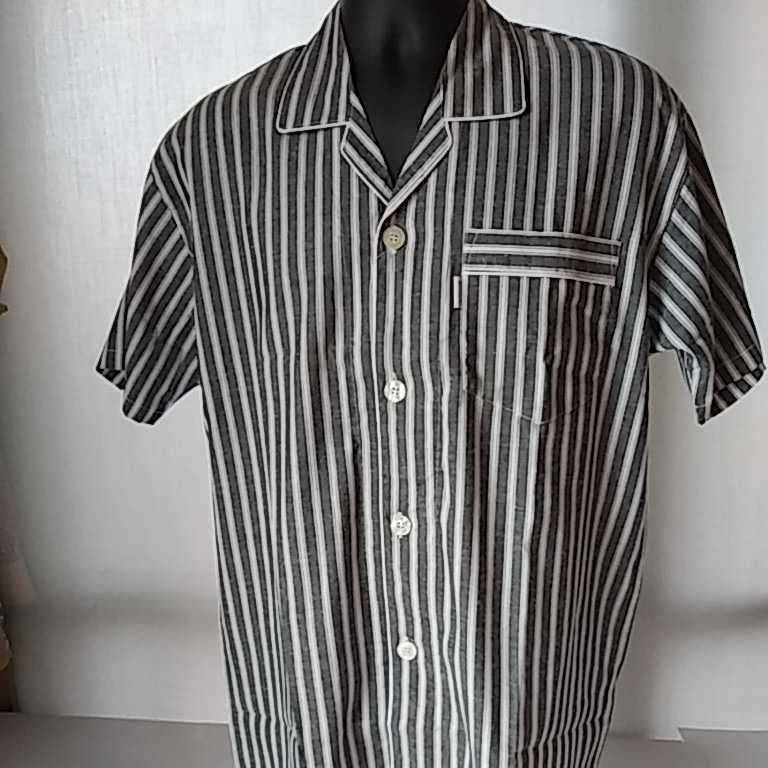 サイズ M 胸囲(88~96) 身長(165~175) 素材 コットン45%レーヨン45%ポリエステル10% カラー ブラック系(ストライプ) 半袖長パンツ 上下同柄 上着にポケット付き 綿+レーヨン混ならではのソフトでしなやかな肌触り パンツは前開き パンツにゴムの取り替え口あり