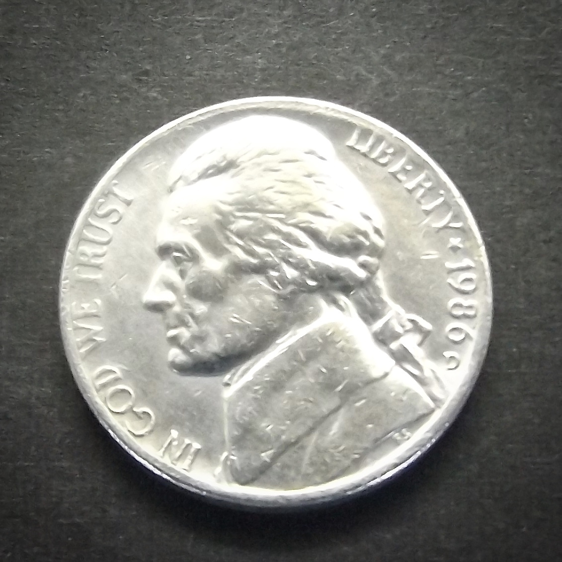 アメリカ 5セント 1986年  送料無料 (17490)ジェファーソン USA  お金 貨幣 硬貨 ニッケル ドル コイン