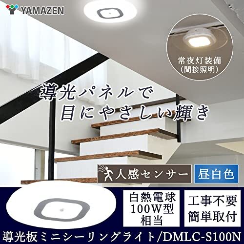 「[山善] 導光板 LEDミニシーリングライト (人感センサー/照度センサー 搭載) 昼白色 白熱電球100W相当 照明器具 小型照明 1520l」▼4983771147203▼(商品説明)b)人感センサー搭載・昼白色 2)白熱電球100W相当 DMLC-S100N・・Color:昼白色Size:2)白熱電球100W相当Style:b)人感センサー搭載・人感センサー搭載 導光板 LEDミニシーリングライト 昼白色・【オシャレなスクエア型】本体サイズ:幅28×奥行28×高さ4.8cm、本体重量:530g・【人感センサー+照度センサー】感知距離:3m、感知角度:90度、消灯までの時間:1分、センサー動作周囲明るさ:50lx・【省エネ仕様】電力:14.5W、白熱電球100W型(90W)相当・【安心】期間:お買い上げ日より1年間(の範囲については、取扱説明書をご確認ください。(一般家庭用以外(業務用など)に使用された場合の故障及び損傷などは対象外となります))説明 【面発光で目い優しい輝き】 内玄関や廊下、階段などに最適な導光板LEDミニシーリングライト。 導光パネルのプリズム光がお部屋をやさしく照らします。 【2種類のセンサー機能】 人物を感知して自動でON/OFFする「人感センサー」と必要なときだけ点灯する「照度センサー」搭載。 離れると約1分後に消灯するので、消し忘れ防止にも繋がります。 【うれしい間接照明】 常夜灯機能付きなので、間接照明としても使用できます。 【色彩を自然に、肌色を美しく再現】 演色性Ra80以上。 演色性の数値が高いほど人も物もより鮮やかに、自然に近い色彩で見ることができます。 【コンパクトで様々なシーンで活躍】 内玄関や廊下、クローゼットなど様々な場所で活躍。 圧迫感が無く、お部屋が広く感じられます。 【電気代の削減に】 LEDシーリングライトは蛍光灯と比べて電力が低く、電気代の削減に繋がります。 白熱電球100W型(90W)相当。 【取付けができる配線機器】 角形引掛シーリング、丸型引掛シーリング、丸型フル引掛シーリング、フル引掛埋込ローゼット、引掛埋込ローゼット、引掛埋込ローゼット(ハンガーなし)。 ※配線器具は付属しておりません。