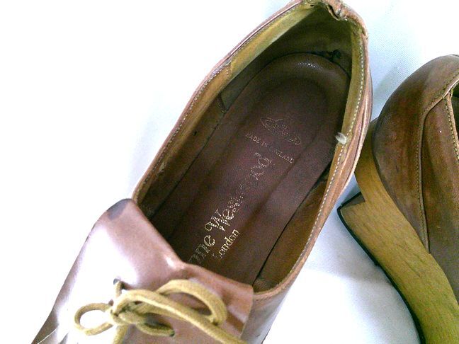 Vivienne Westwoodのロッキンホース ゴルフです。非常に昔のデザインでヴィンテージ 品になります。お色も少し明るめの茶色でかわいく、他にはないデザインです。サイズは約24cm。状態は ウッド部分に傷や汚れ、爪先にレザー部分にスレや傷、他の部分にも変色などありますがまだまだ履いていただけます。かかと部分はリペア済み。14510(550)20240808