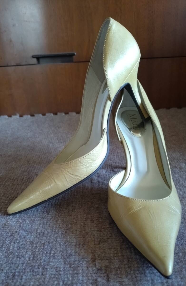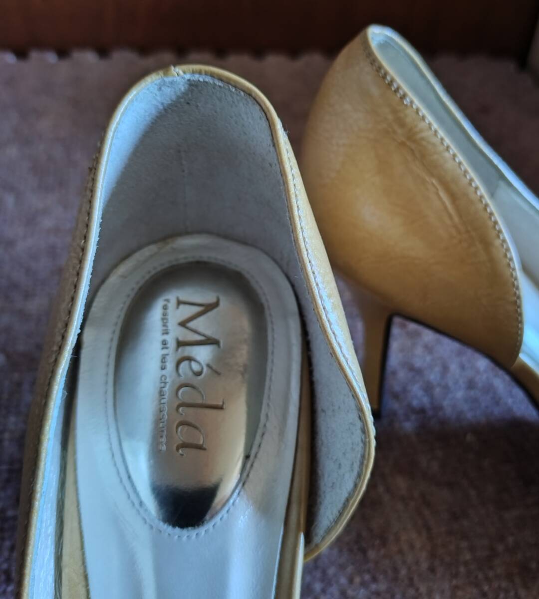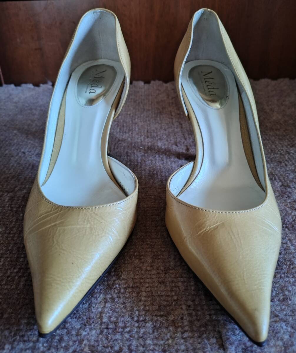 Meda(メダ)のポインテッドトゥサイドオープンハイヒールのやや使用感ありの商品です。