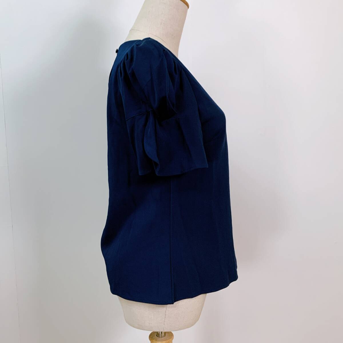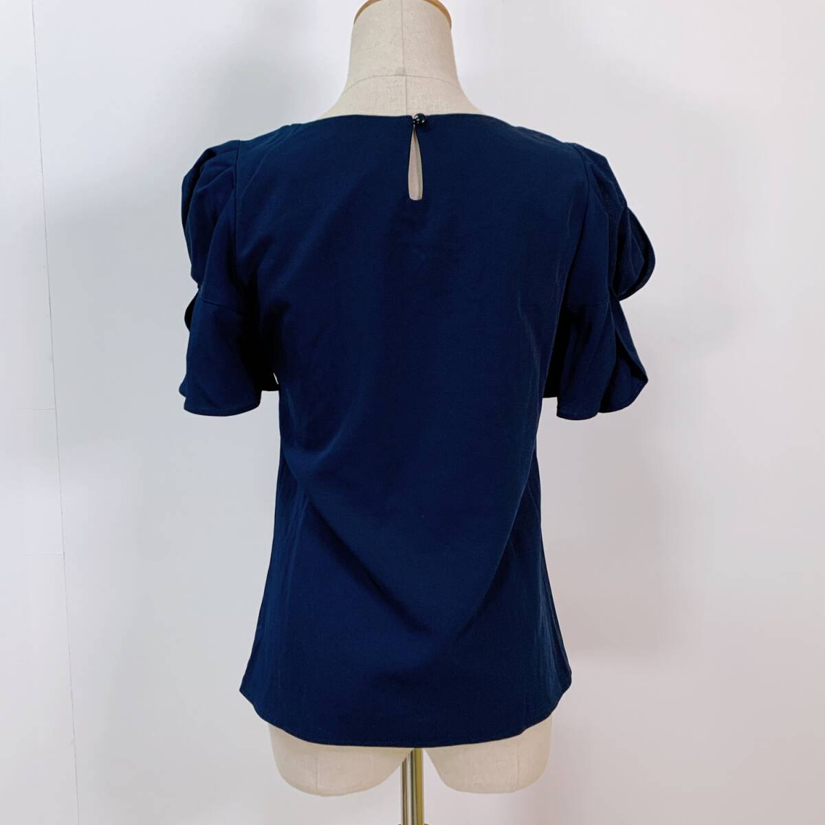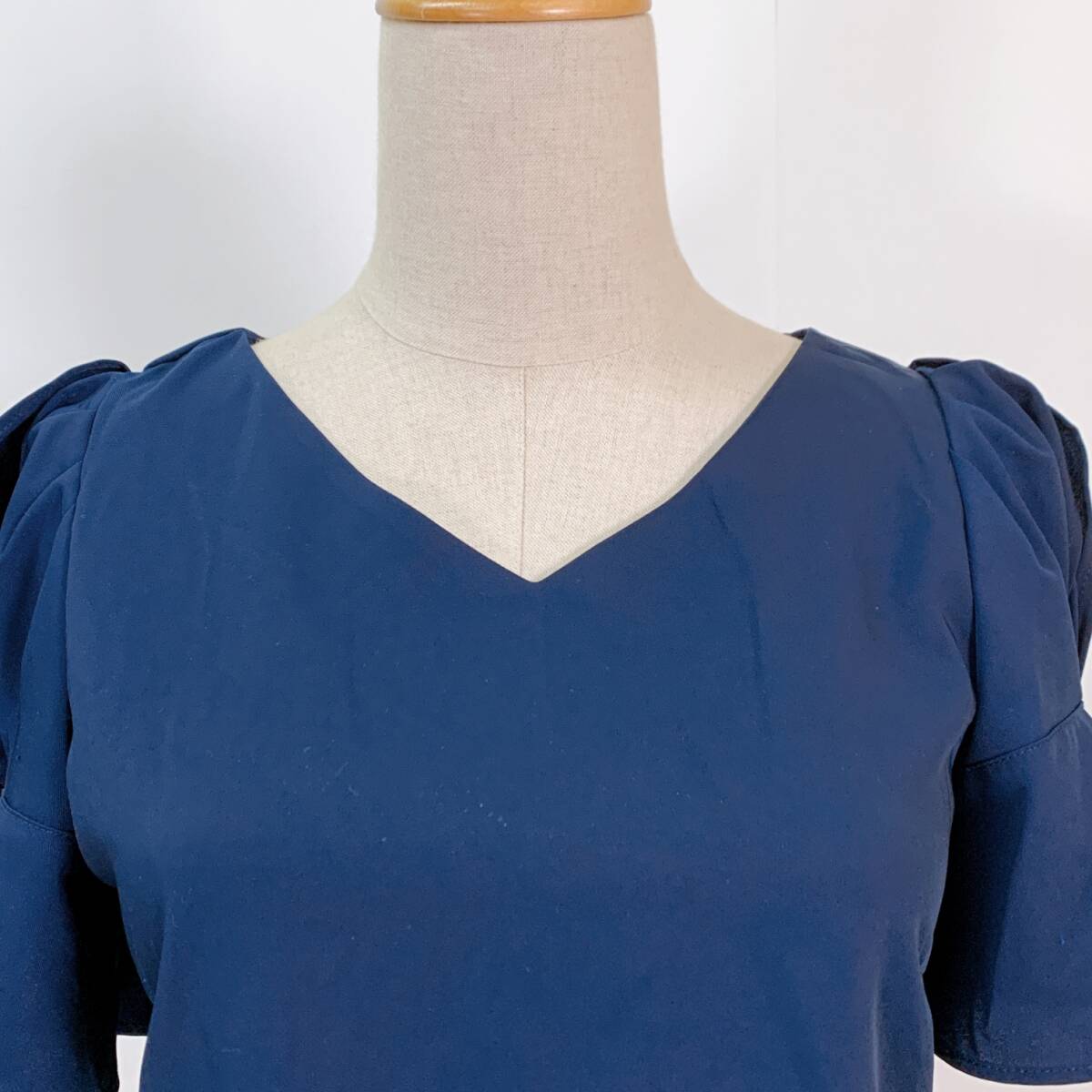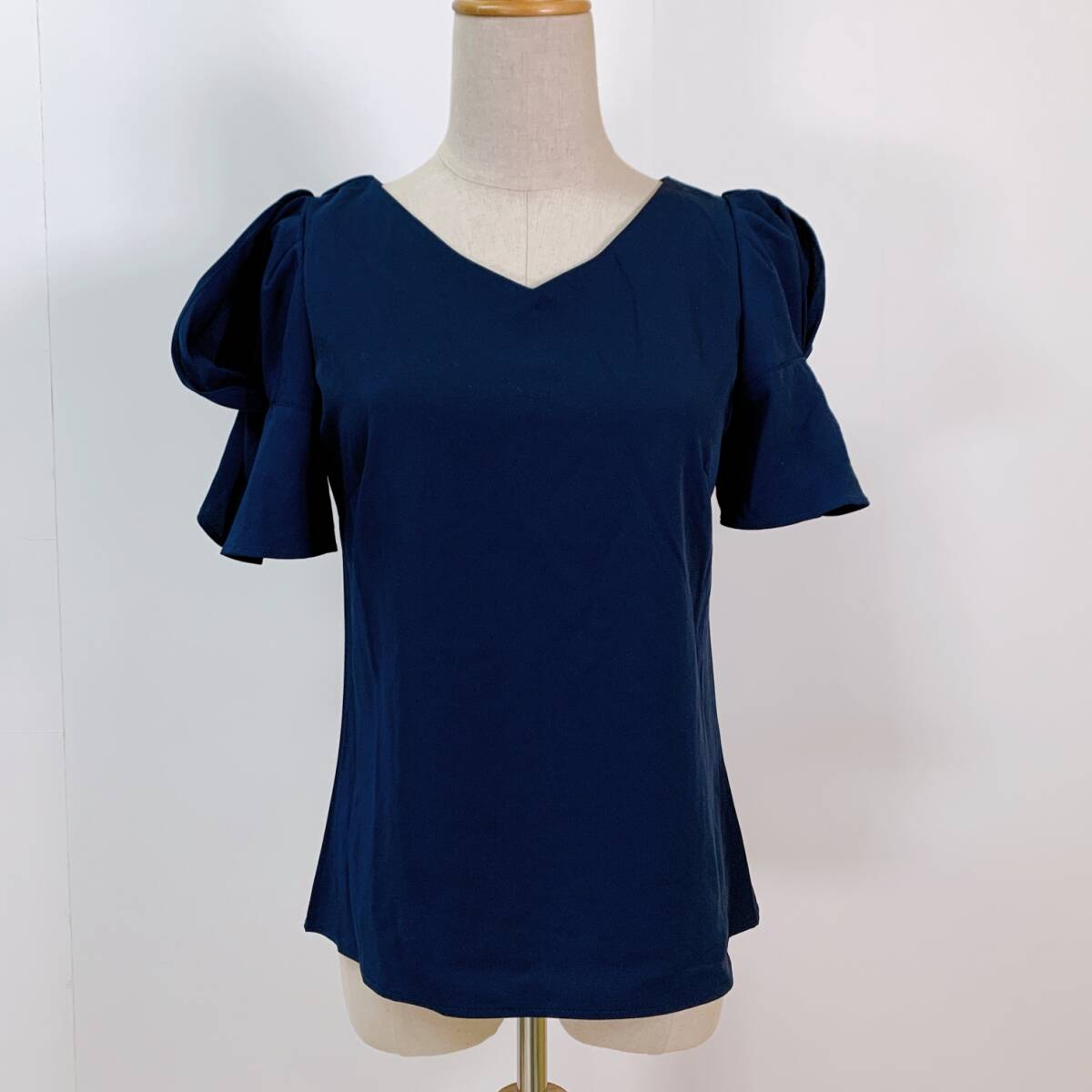 YH1177 clear クリア レディース 半袖 ブラウス Vネック 薄手 肩出し 無地 ネイビー 紺 フリーサイズ きれいめコーデ かわいい 万能 USED