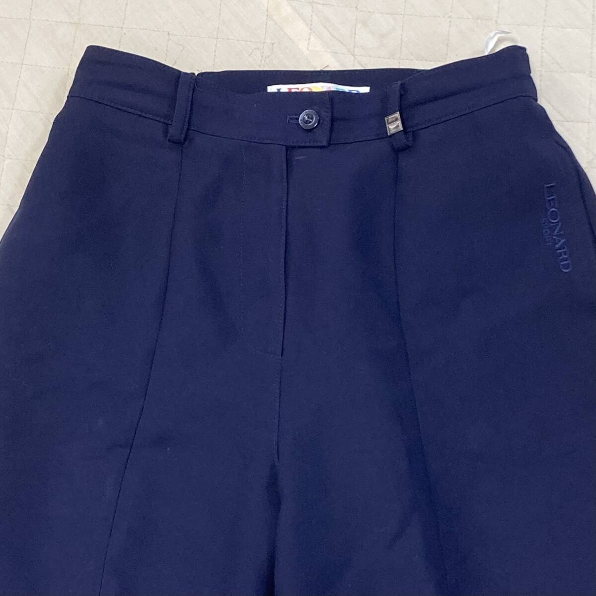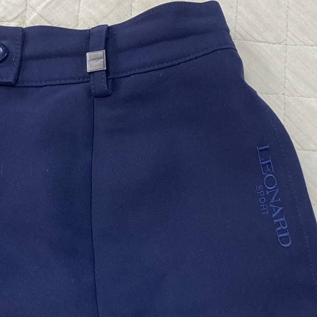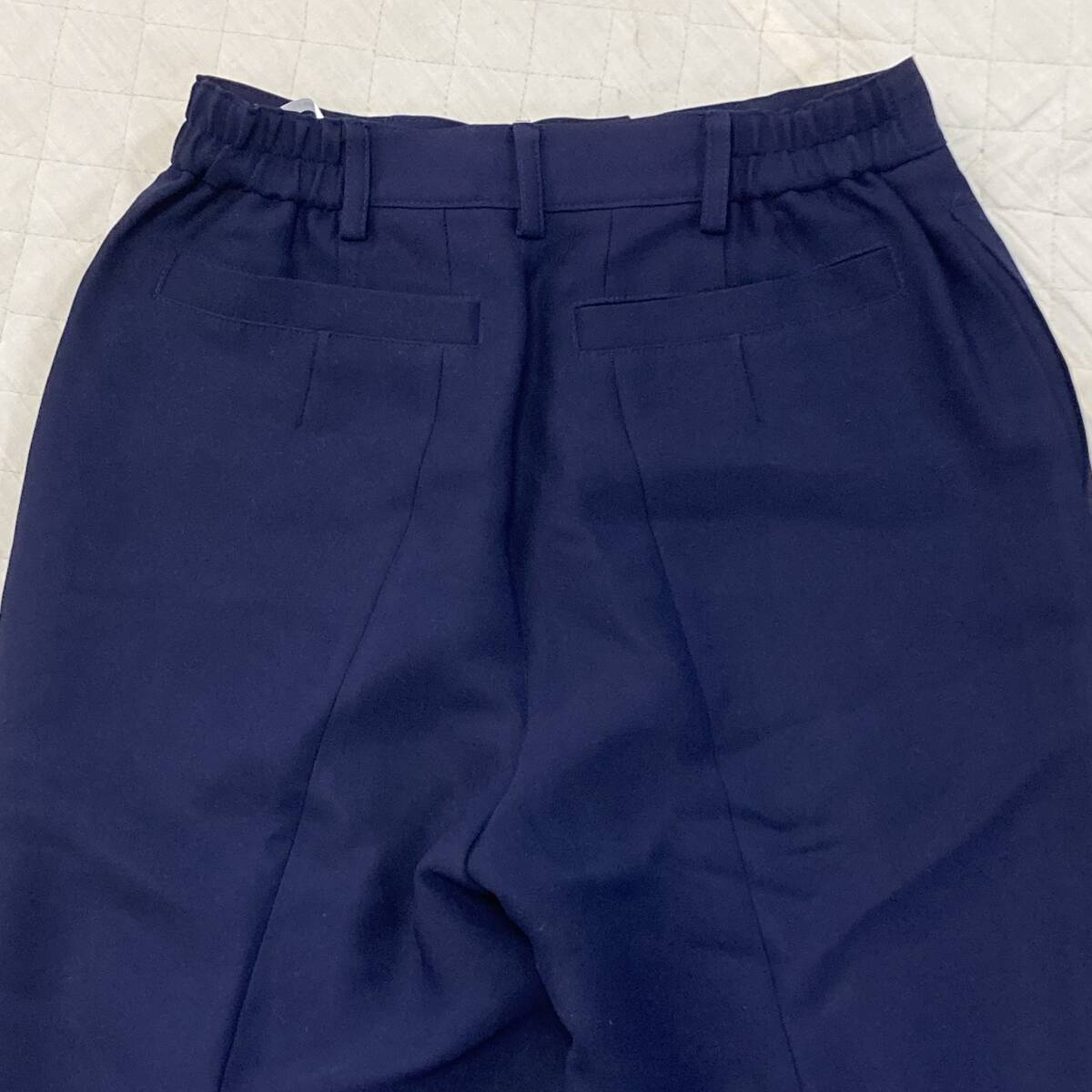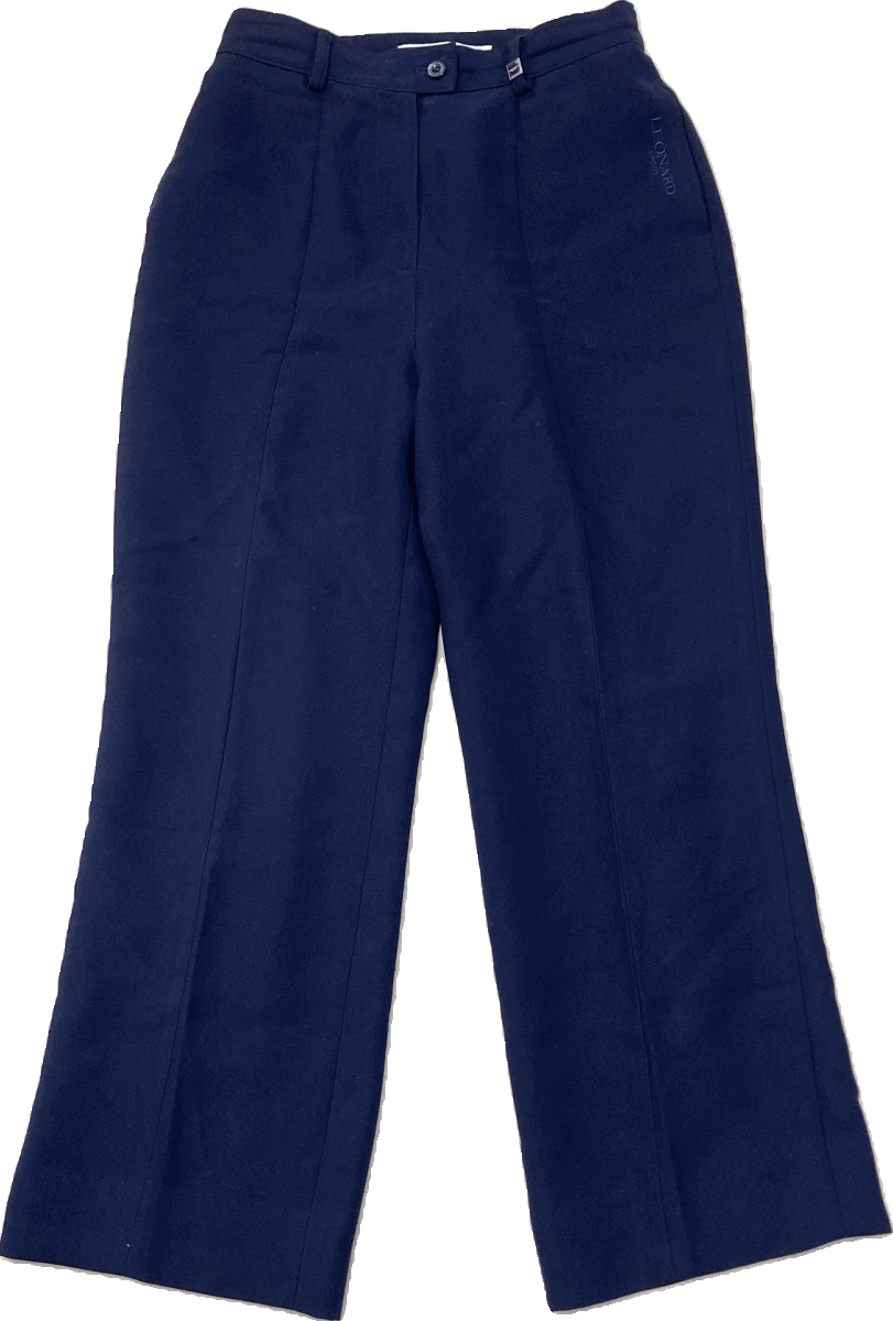 ■前ファスナー、ウエスト両サイドゴム、縦ポケット、バックポケット2、左ポケット口にロゴ文字刺繍、左前ベルトループにブランドネームプレート付き、5cmベルトループ、裾まで裏地の付いたポリエステルパンツです。