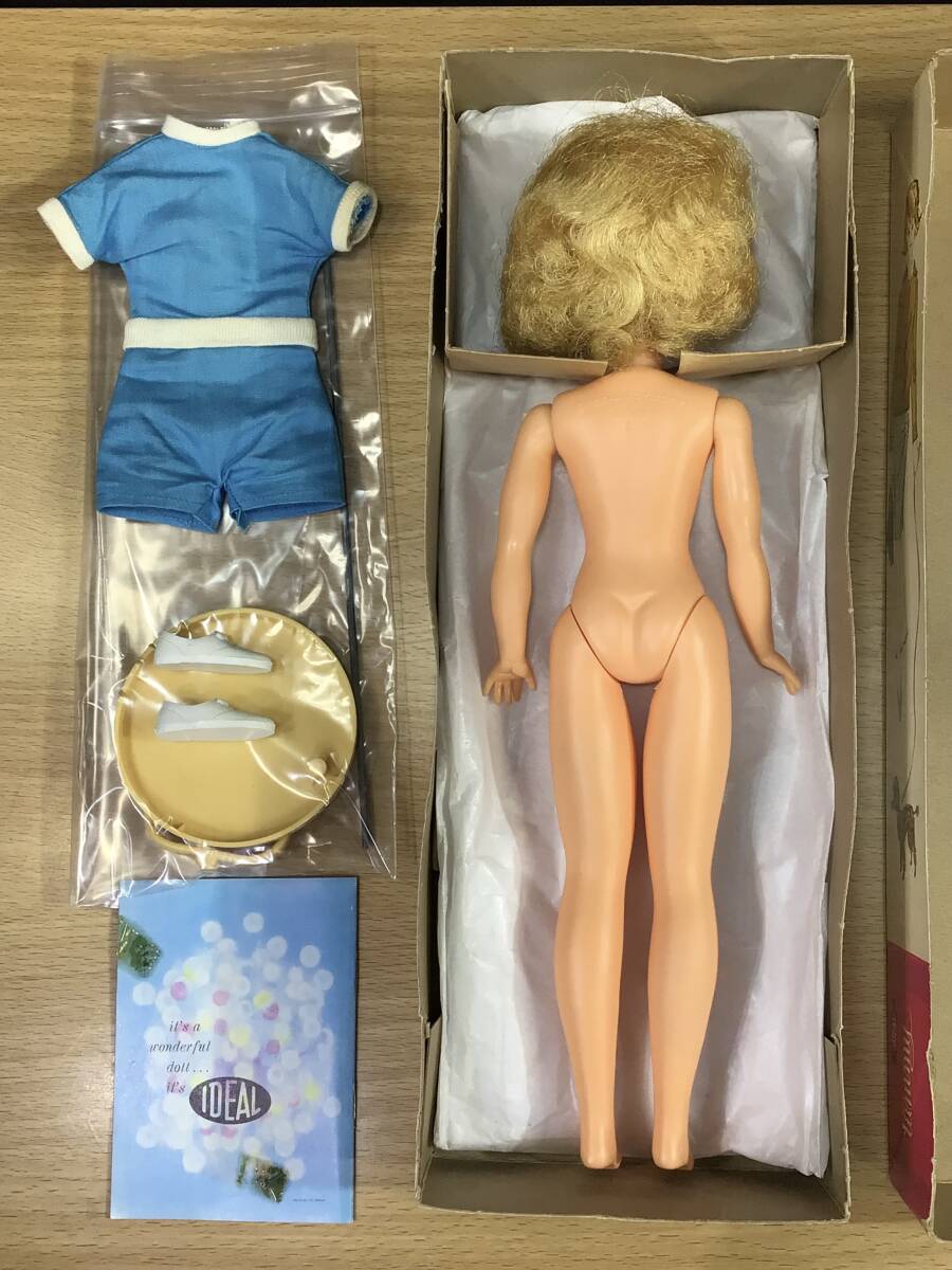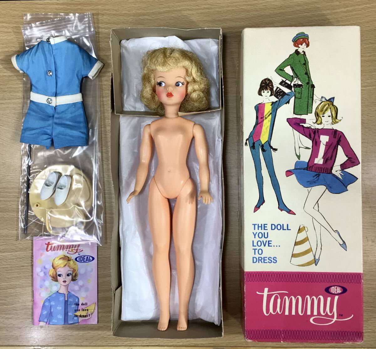 コレクションの整理をしています。「昭和レトロ・ヴィンテージ・美品・レアな、IDEAL Tammy タミーちゃん アメリカ製、箱入り」の出品になりますj。★人形、洋服、くつ、ドールスタンド、冊子(英語)、箱、が付いてます。かなり前にオークションで入手後自宅保管していました。箱に「1962年 IDEAL TOIY MADE IN USA」の表示ががあります。商品の状態や詳細は写真で確認してください。商品の箱の大きさは約寸法で巾12cmX高さ32cmX奥行き5cmです。状態がとても良くてレアな金髪の可愛い女の子です。ぜひこの機会に入手していただければとても嬉しいです。発送はヤフネコ宅急便60サイズを予定しています。よろしくお願いします。