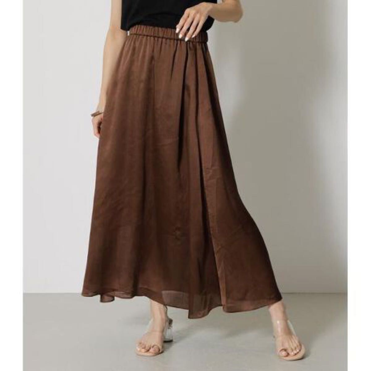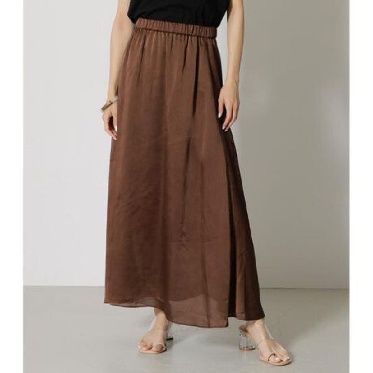 程よい透け感と光沢感が特徴的な素材を使用したマキシスカート。