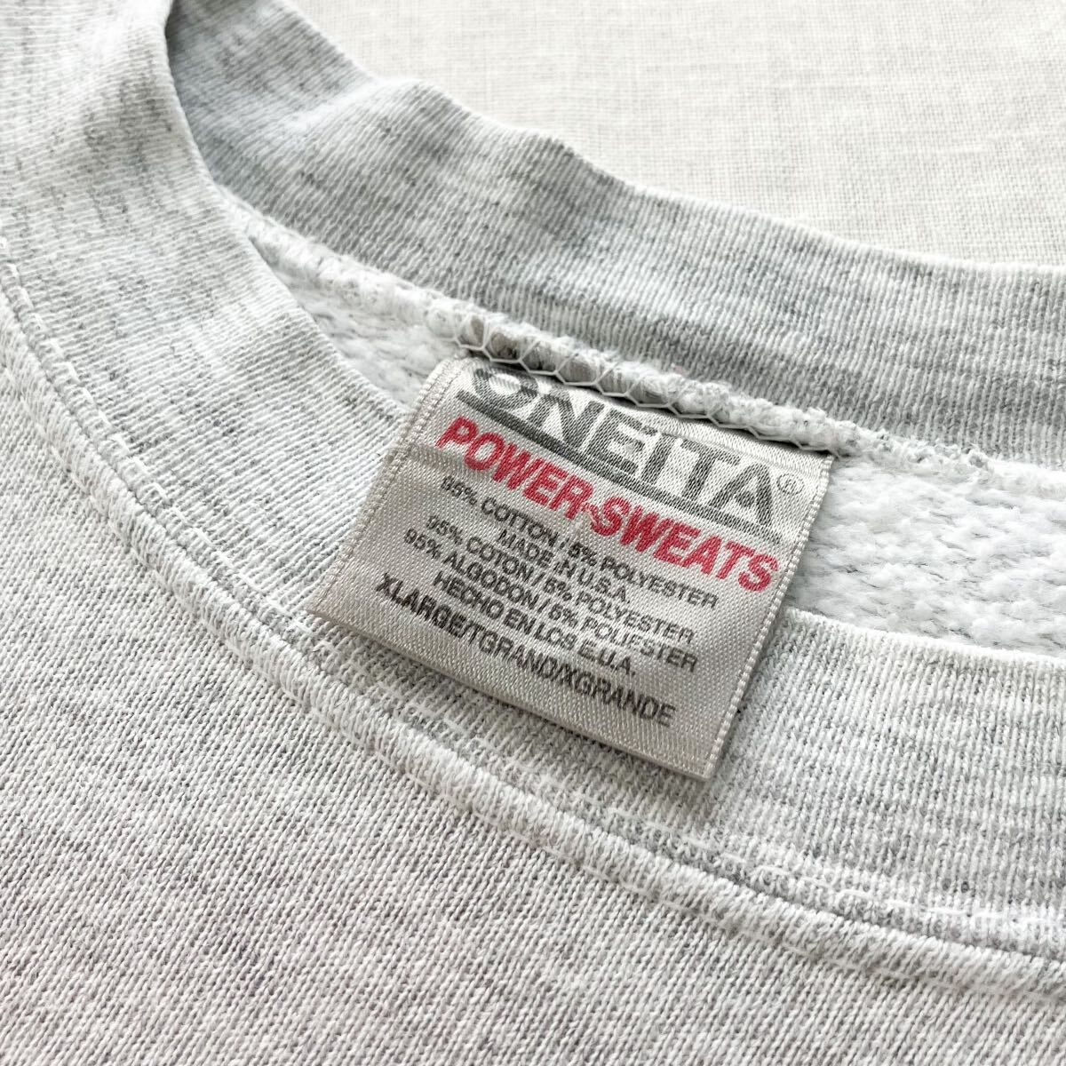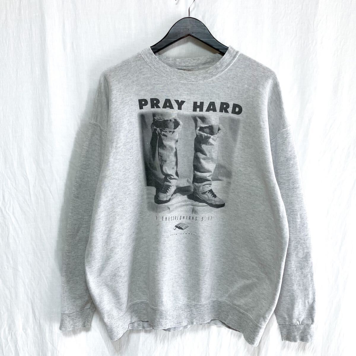 90s USA製 PRAY HARD ONEITA プリント スウェット シャツ 霜降りグレー 聖書 グッド デザイン XL
