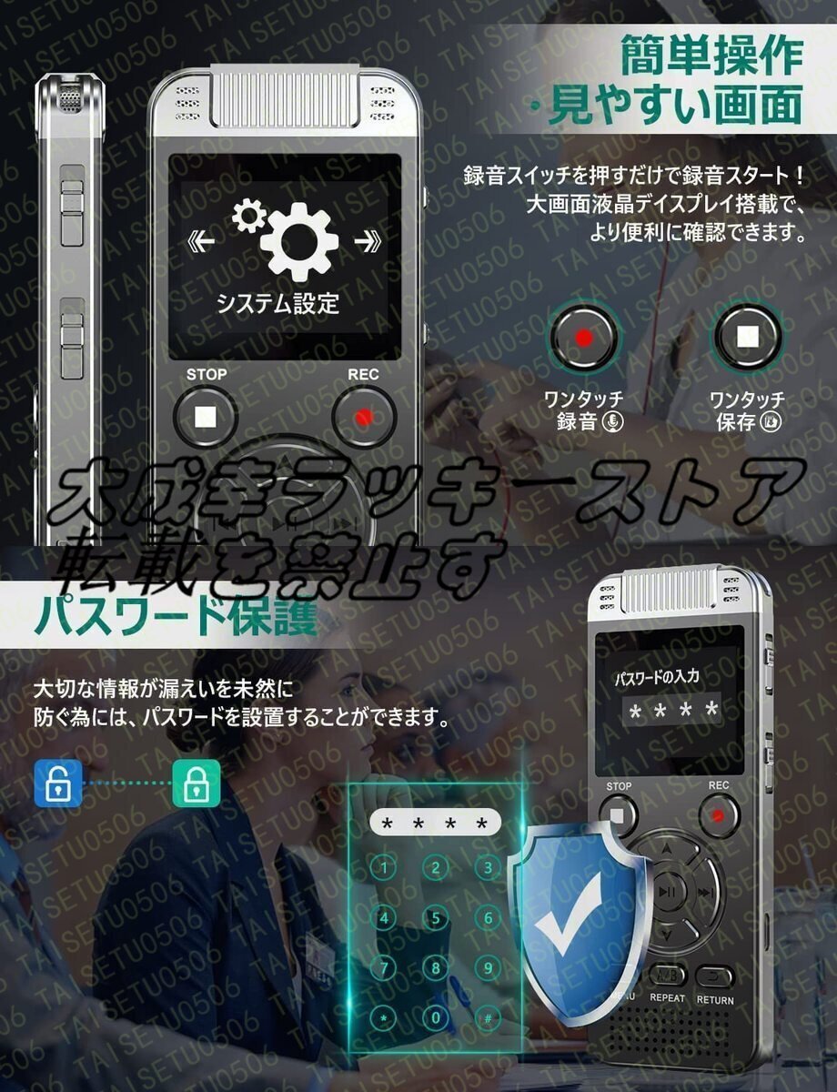 icレコーダー 録音機 ボイスレコーダー 小型 高音質 長時間 4GB大容量 1.4インチ液晶画面 ダブルノイズキャンセリング ステレオマイク搭載