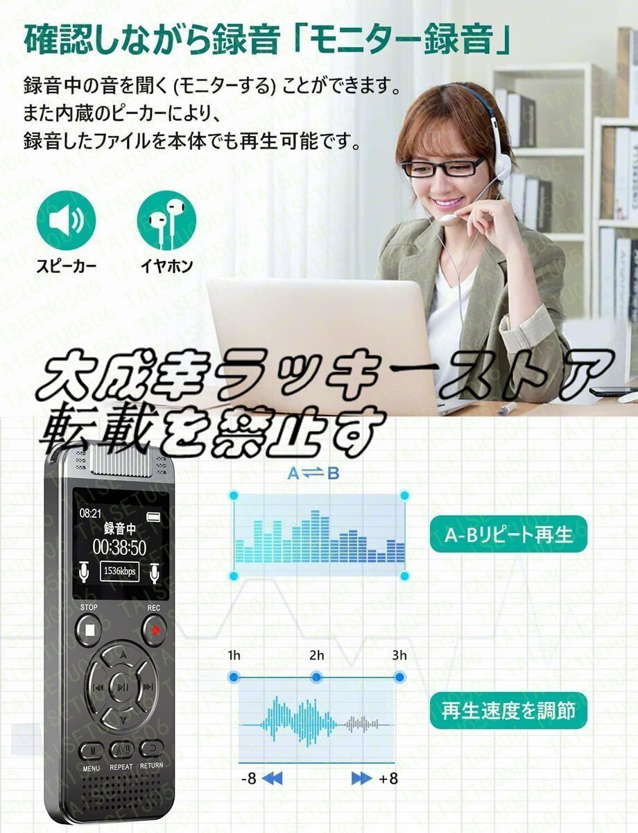 ★2022年に初心者でも本格的な高音質録音が可能なボイスレコーダーが登場!本製品は高性能無指向性ステレオマイクを搭載し、ダブルノイズキャンセリング技術を採用、1.4インチ大画面に加えて、初めてICレコーダーを利用する方でも使いやすいよう、クリアな音質を実現。