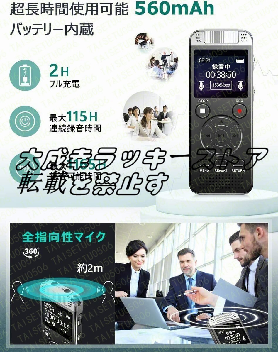 ★更に、本体に560mAh超大容量バッテリーを内蔵され、最大115時間連続録音可能のため、従来機種に比べて、2.6倍も長持ち、会議や講義など長時間録音した方でも安心。インタビュー・メモ録・習い事の記録・議事録の作成など、多彩な用途で大活躍します。