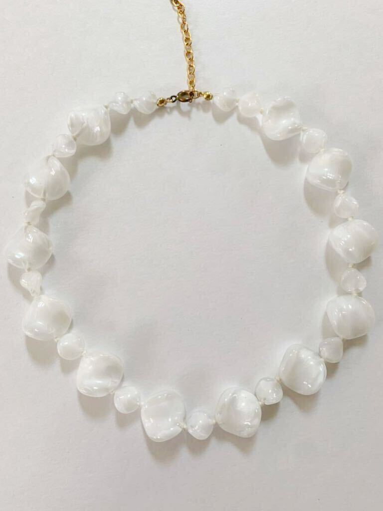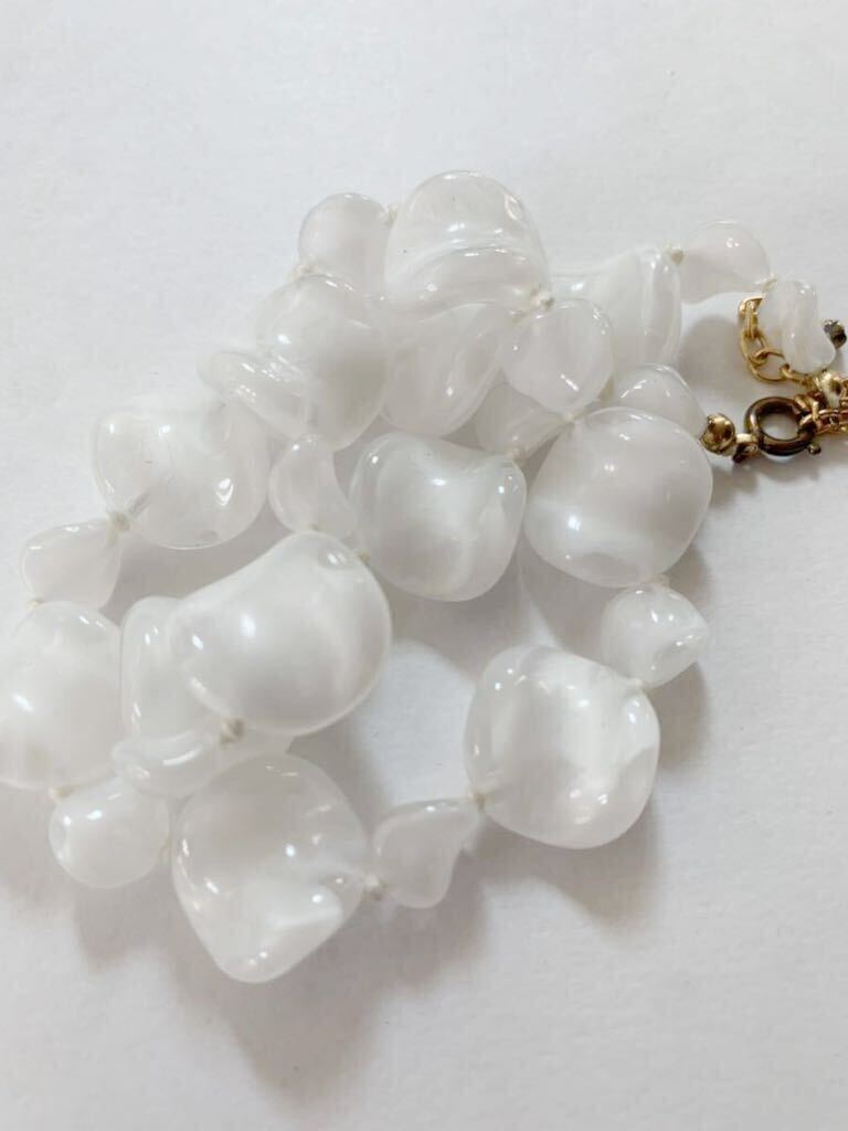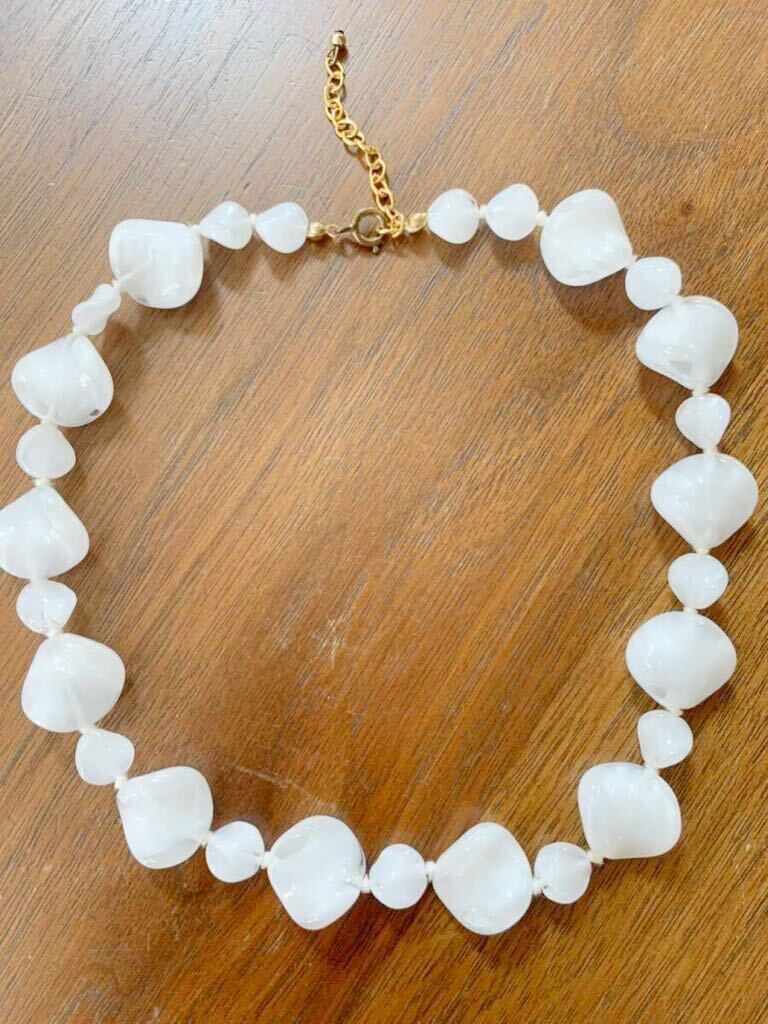 【美品】イギリス購入 ヴィンテージ ヴェネチアンガラス ネックレス ホワイトマーブルガラス イタリア製 コスチュームジュエリー