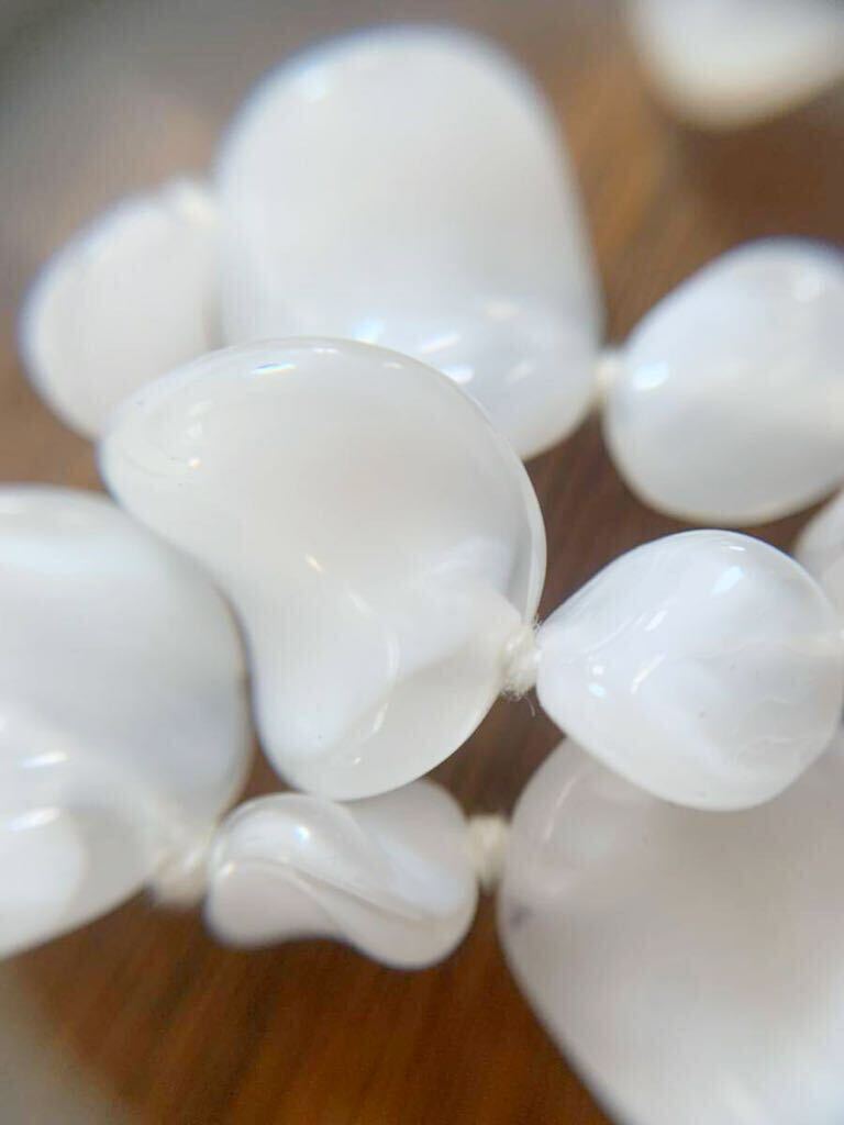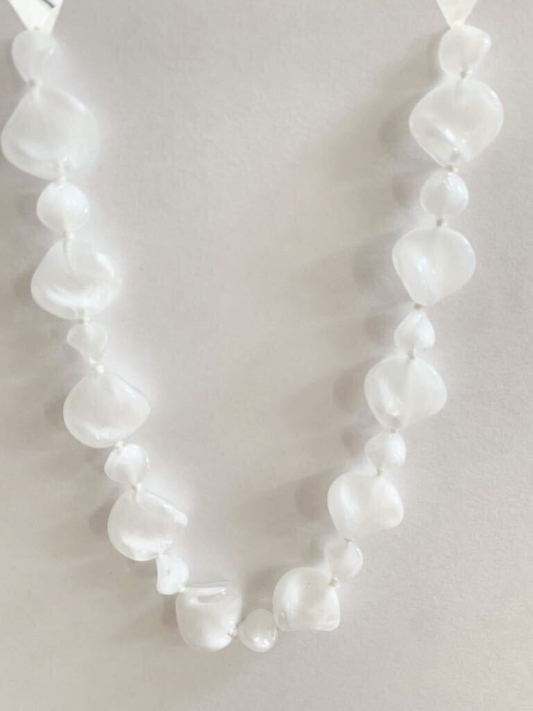 柔らかい曲線が美しい透明と白いマーブルガラスが織りなすネックレスのご紹介です。