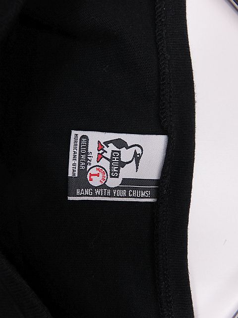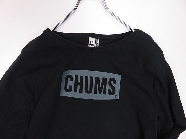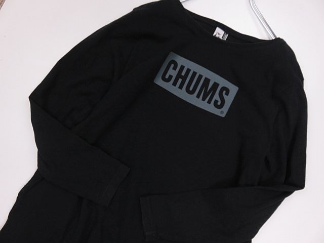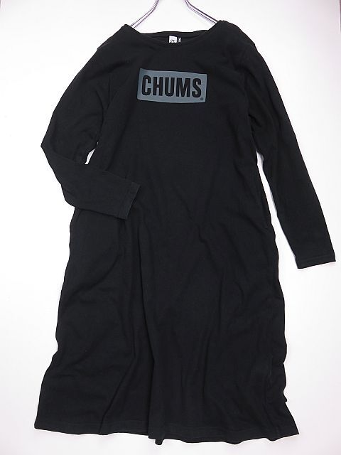 チャムス CHUMS ロング長袖ワンピース 黒 ロゴプリント L