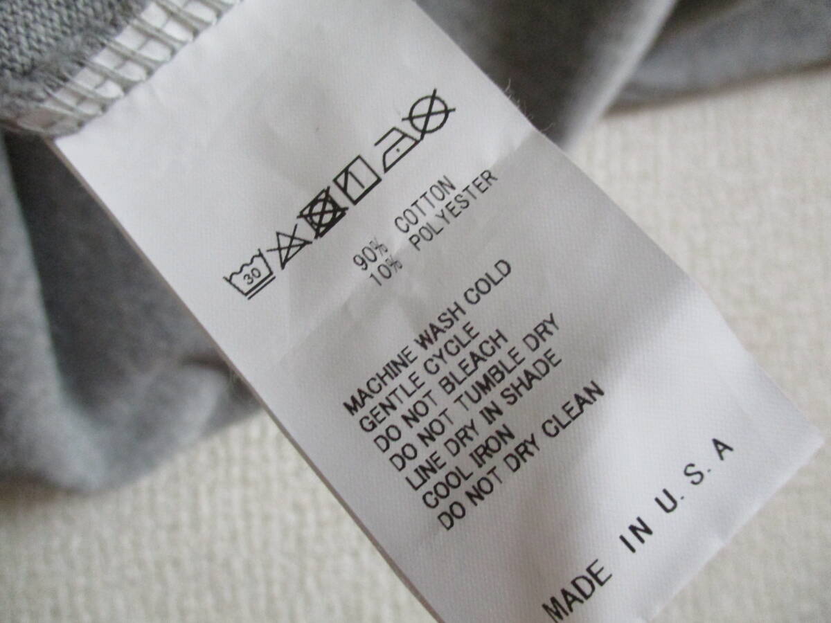 サイズ表記はXL、100%コットン、アメリカ製、色はグレーです。