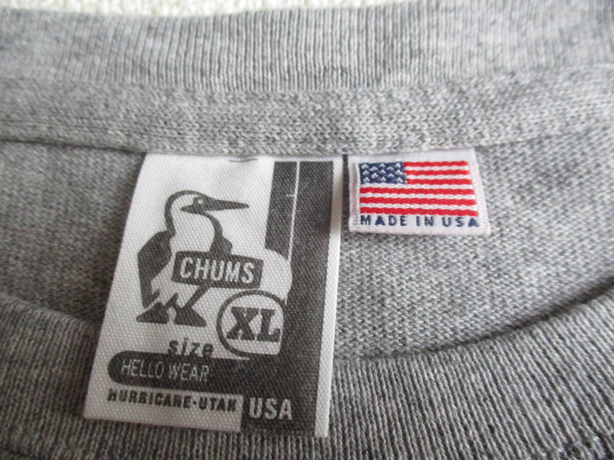 美品★ XL チャムス★ 半袖クルーネックTシャツ★ アメリカ製 USA グレー