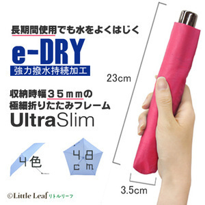 ◆強力撥水加工が施された「e-DRY」のウルトラスリム折り畳み傘。