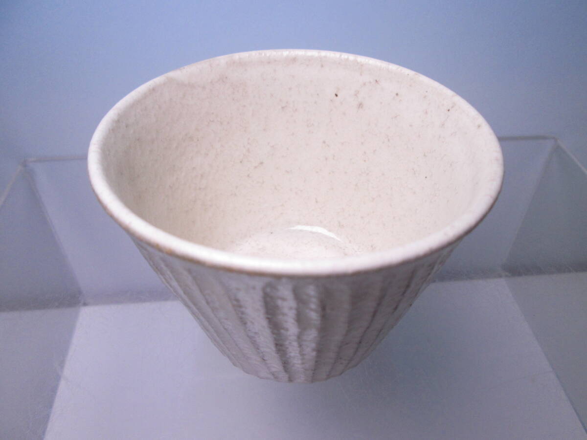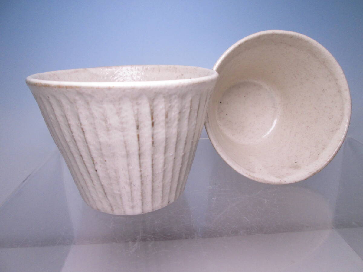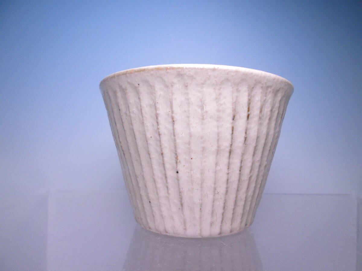 ☆お料理屋さんの器 柔らかな白肌 縦線の向付 五客 箱付 酒器/蕎麦猪口/懐石/割烹/日本料理