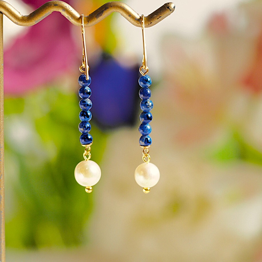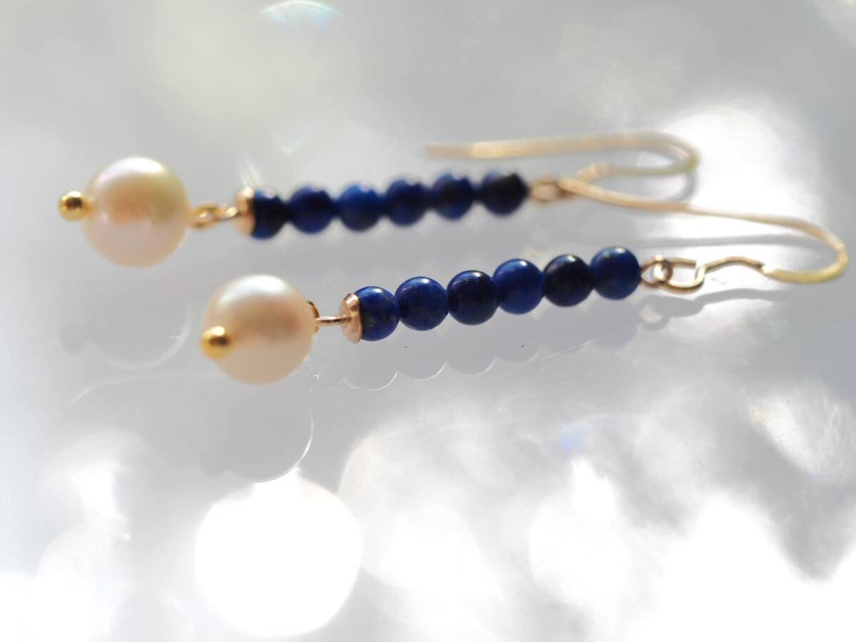 天然アコヤパール ラピスラズリ K14GF ピアス