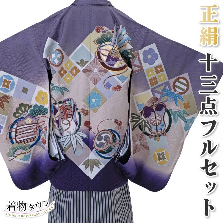 | 商品説明 | 五歳用の羽織袴のフルセットです。 七五三やお正月、その他のお祝い事を着物姿でお楽しみください。 豪華な13点フルセットですので、買い足すものがなく着用できます。 (1)羽織 (2)着物 (3)長襦袢 (4)袴 (5)角帯 (6)雪駄 (7)扇子 (8)懐剣 (9)羽織紐 (10)お守り (11)足袋 17~18cm ※足袋のサイズは17~18cmとなっておりますが、事前にご連絡いただければ、別のサイズに変更も可能です。 お気軽にお問合せください。 その他の足袋のサイズは、13~14cm ・ 15~16cm ・ 19~20cm ・ 21~22cmとなります。 (12)腰紐(3本) (13)化粧箱 |
