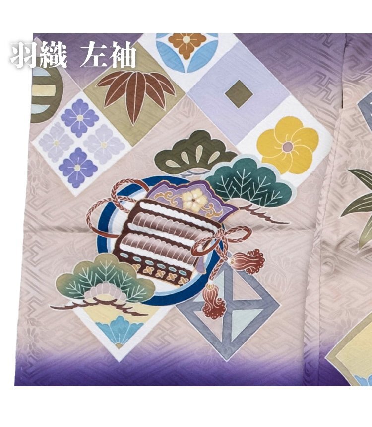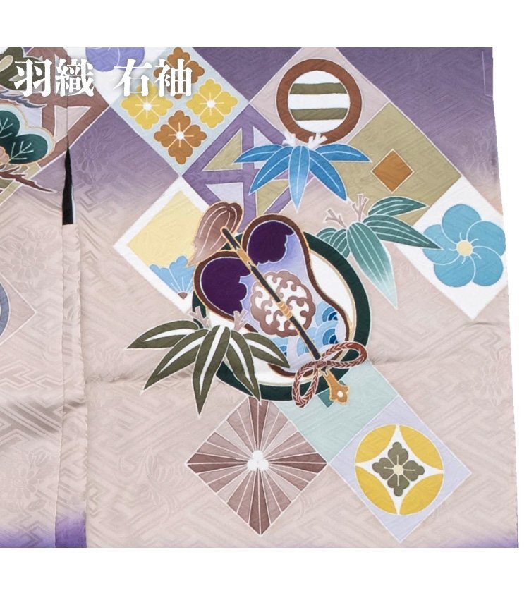 | 着物サイズ | 【着物サイズ】 着物身丈:約 100cm 着物裄丈:約 54cm 着物袖丈:約 57cm 羽織身丈:約 65cm 【袴サイズ】 袴紐下:60cm(適応身長 約100~112cm) 【雪駄】 約 19.5cm |
