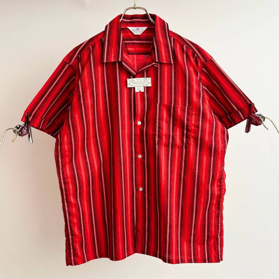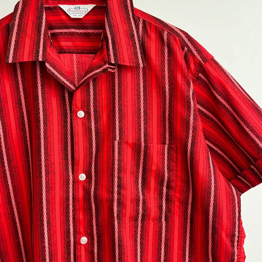 希少《 Dead Stock / Vintage / Large 》50s 60s デッド【 Personality ビンテージ ランダムストライプ コットン 開襟 半袖シャツ L 】