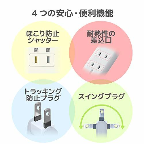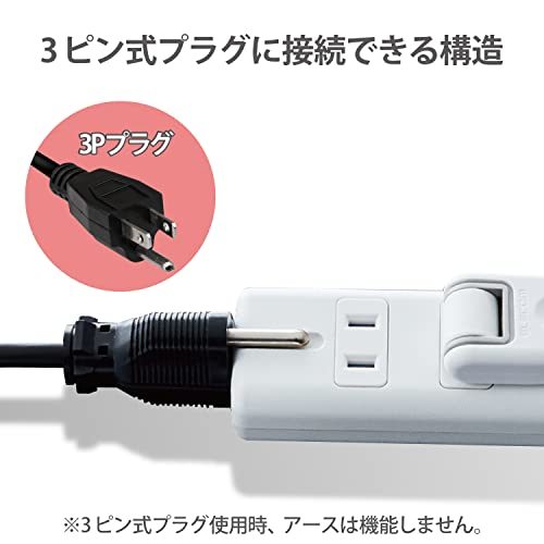 「エレコム 電源タップ マグネット 1m 3個口(内3ピン1) ホワイト T-KM01-2310WH」▼4549550149068▼(商品説明)3個口・ホワイト 1m T-KM01-2310WH・・Size:1mStyle:3個口・オフィスやご家庭など、さまざまなシーンで使いやすいマグネット ほこり防止シャッター 雷サージ付電源タップ。・未使用時にほこりの侵入を防止する「ほこり防止シャッター」を装備した電源タップです。・また、差込口には耐熱性に優れたユリア樹脂を使用しており、万一の発熱の際にも融解しにくく、電気火災の防止に有効です。・タップ底面の強力なネオジム磁石でしっかり固定できます。・トラッキング現象による火災の防止に役立つ絶縁キャップ付きのコンセントプラグを採用しています。説明 【 仕様 】 ■本体差込口形状:2ピン(側面にした1個口のみ3ピン対応※アース機能はありません) ■本体差込口個数:3個口 ■プラグ仕様:2ピン ■3ピン→2ピン変換アダプタ付属:× ■コード長:1.0m ■定格:125V・15A・1500W ■スイッチ:× ■雷ガード:○ ■ほこりシャッター:○ ■絶縁キャップ付きプラグ:○ ■差込口キャップ付属:× ■通電表示ランプ:× ■二重被ふく:○ ■抜け止め機能:× ■スイングプラグ:○ ■マグネット:○ ■壁掛け用フック:× ■ノイズフィルター:× ■モジュラジャック付:× ■カラー:ホワイト ■材質:本体:ABS樹脂、プラグ:PVC 差込口:ユリア樹脂 ■外形寸法:幅40mm×奥行94mm×高さ23mm ※コード部分及びプラグ部分を除く ■質量:約160g ■使用可能地域:本製品は日本国内の電源を想定して設計されていますので、日本国外ではご使用いただけません。 ■電気用品安全法:PSE適合 【 説明 】 ■未使用時にほこりの侵入を防止する「ほこり防止シャッター」を装備した電源タップです。 ■また、差込口には耐熱性に優れたユリア樹脂を使用しており、万一の発熱の際にも融解しにくく、電気火災の防止に有効です。 ■タップ底面の強力なネオジム磁石でしっかり固定できます。 ■トラッキング現象による火災の防止に役立つ絶縁キャップ付きのコンセントプラグを採用しています。 ■電源コードには一般社団法人日本配線システム工業会規格(JWDS0010)に適合した二重被ふくコードを採用しており、断線や被ふく破れによる感電・火災の防止に有効です。 ■狭い場所でも配線しやすい180°スイングプラグを採用しています。 ■プラグ仕様は2ピン式で、便利な3個口タイプです。 ■突然の落雷による雷サージから、パソコンやAV機器などの精密機器を守る雷ガードタップ。最大サージ電圧12 500Vの高性能雷サージ吸収素子(バリスタ)を内蔵し、わずかなサージで回復不能になる可能性がある機器を、落雷から守るのに非常に有効なアイテムです。(※最大サージ電圧12 500VはJEC210/212規格に基づく数値です。) ■側面に3ピンプラグも挿すことができます。 【商品に関するお問い合わせ】 エレコム総合インフォメーションセンター TEL. 0570-084-465 FAX. 0570-050-012 受付時間 / 10:00~19:00 年中無休
