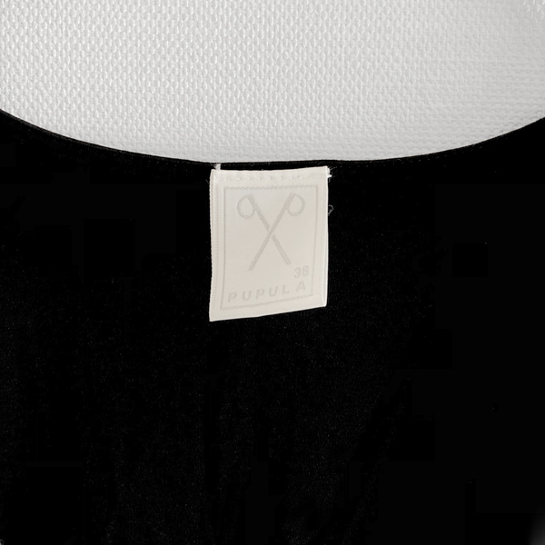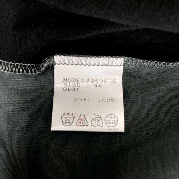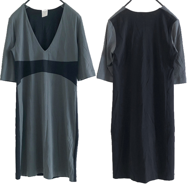 PUPULA ププラ Vネックカットソー コットンチュニックワンピース ブラック×グレー系 黒38サイズ レディース とろみ七分袖 綿100%