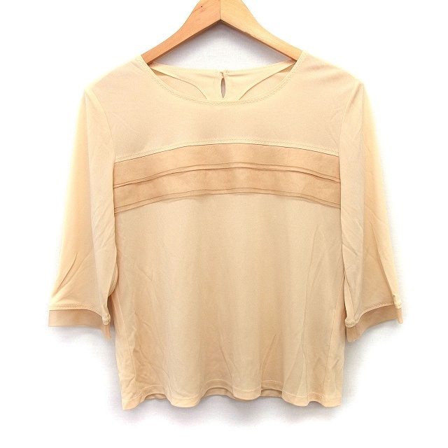 エルミダ EL MIDAS カットソー ブラウス オーガンジー テープ 七分袖 丸首 11 ベージュ /HT19 レディース