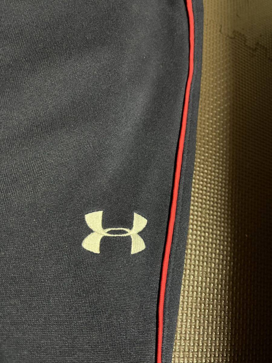 美品UNDER ARMOURスウェット濃紺、ロゴ白(刺繍)ライン赤ストレッチパンツ
