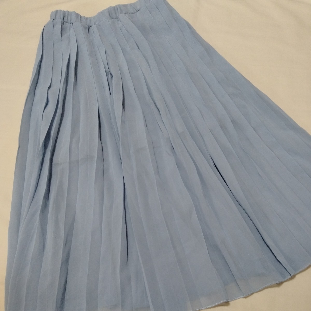 ブルーのプリーツスカートはミニスカートの裏地が付いています。