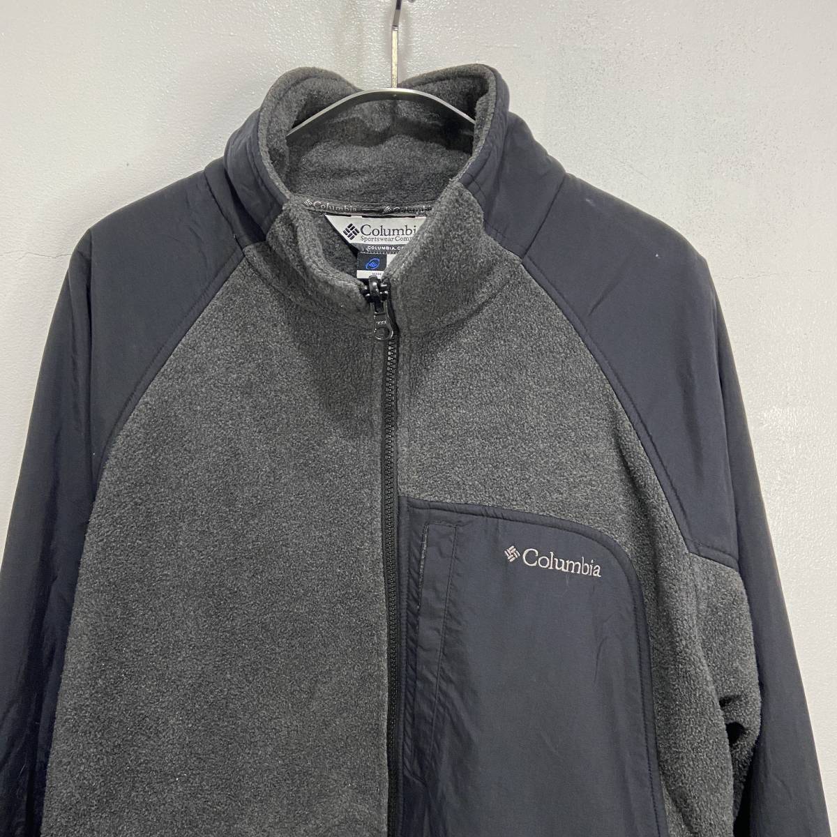 送料無料☆Columbia☆コロンビア☆フリースジャケット☆ワンポイントロゴ☆切り替え☆グレー☆XL☆B24M