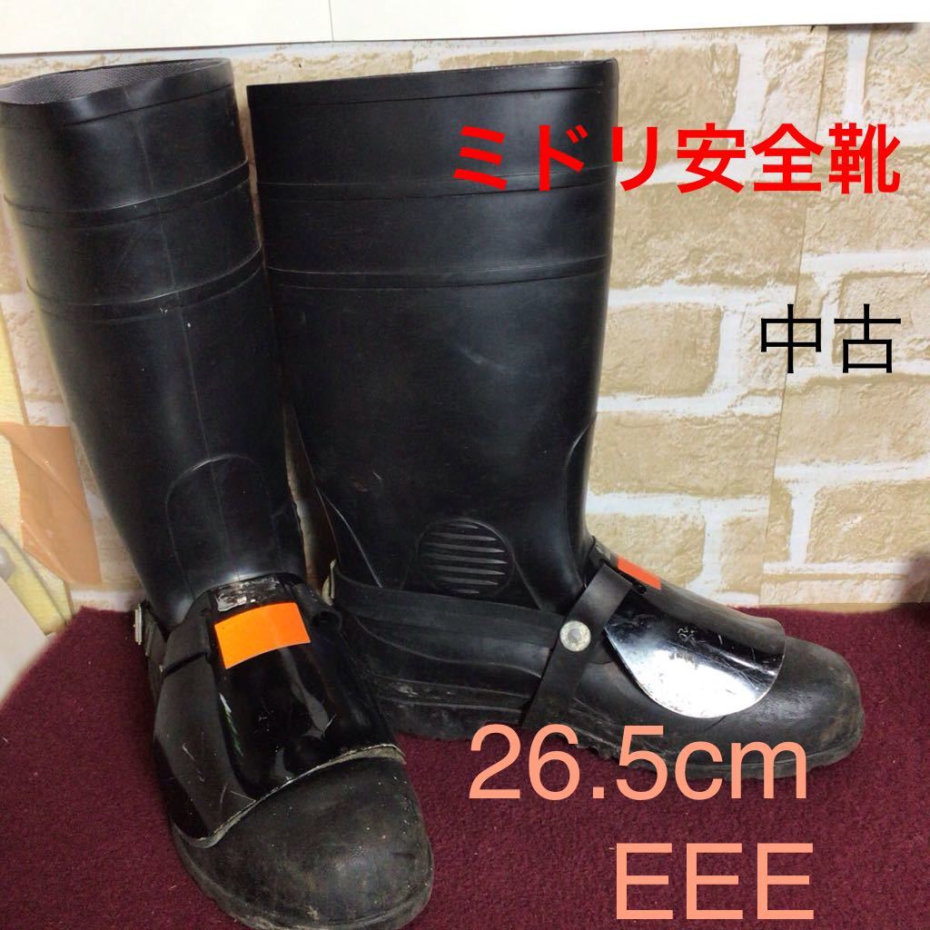 【売り切り!送料無料!】A-328 ミドリ安全!長靴!ブーツ!先芯あり!26.5cm EEE!黒!甲プロテクター付き!工場!作業!DIY!防水!中古!