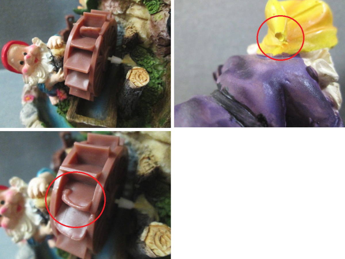 ・元々のデザインなのか分かりませんが、一番上の小人の帽子の先が欠けたようになっています。(画像6参照)