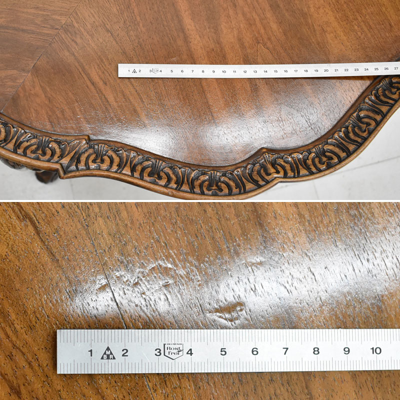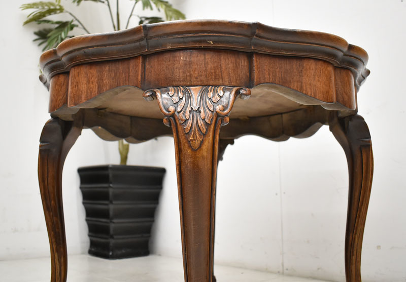 | アンティーク 円形テーブル φ700 アンティークの円形テーブルです。 ※カブリオールレッグ(カブリオレレッグとは、17世紀末から18世紀にかけて、フランスを中心にヨーロッパで流行した、動物の脚をモチーフにした緩やかなS字を描く曲線デザインの脚のことです) ※かなり古いものをリペアしてあるようです。 クリーニングとメンテナンスをしっかり行ってお届けします。 この商品は中古品として美品といえます。 多少の擦れや傷はあるものの気になるほどではないでしょう。 御使用端末の環境により多少画像の表示色と実物の色に差違が生じる場合がございますのでご了承ください。 |
