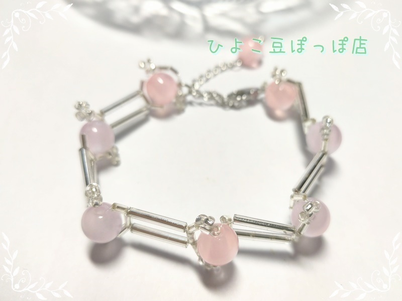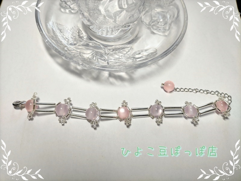 001:竹ビーズとキャッツアイのブレスレット(ピンク)