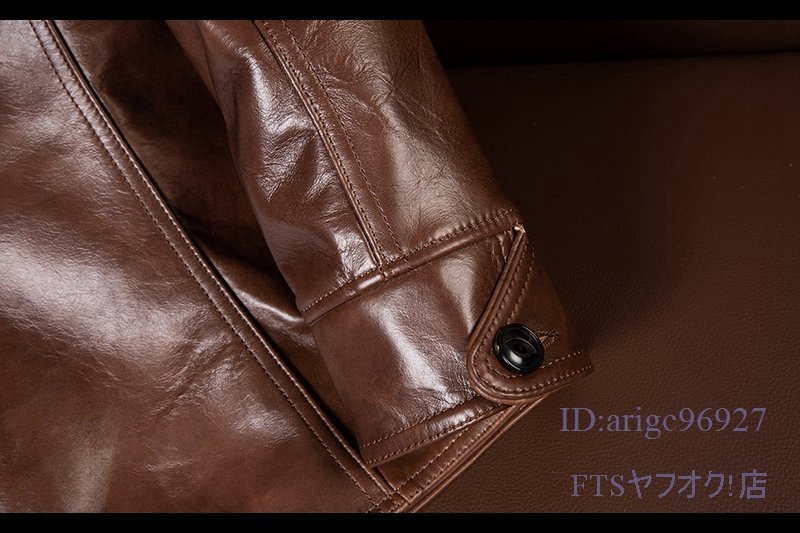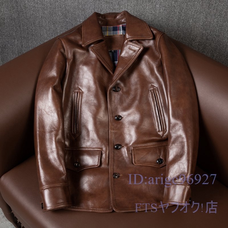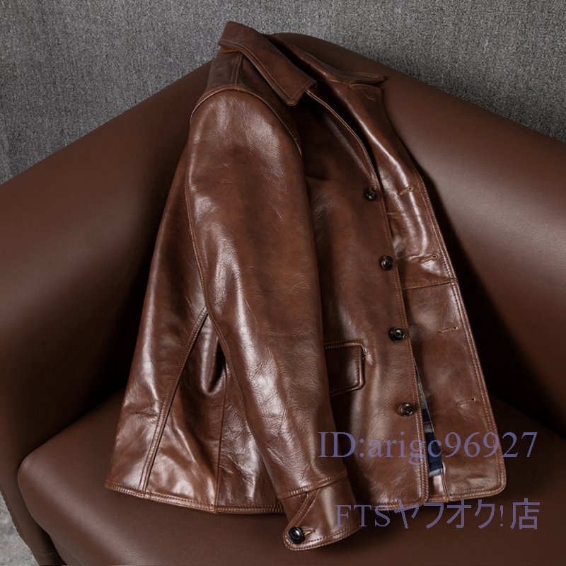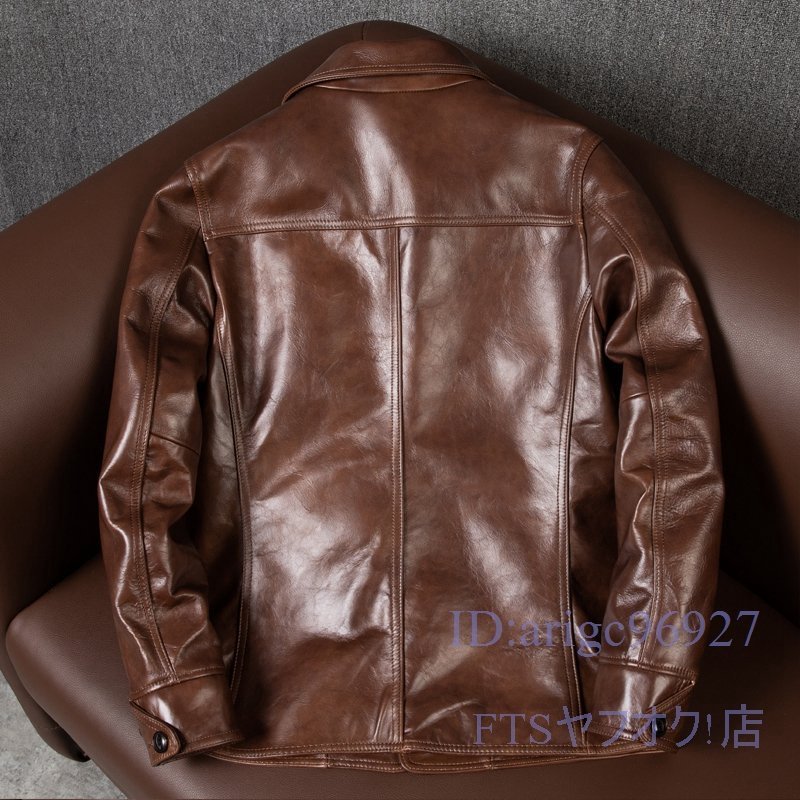 V720☆新品レザージャケット 上品 高級 本革 馬革 ライダースジャケット 革ジャン S~5XL ブラウン秋冬