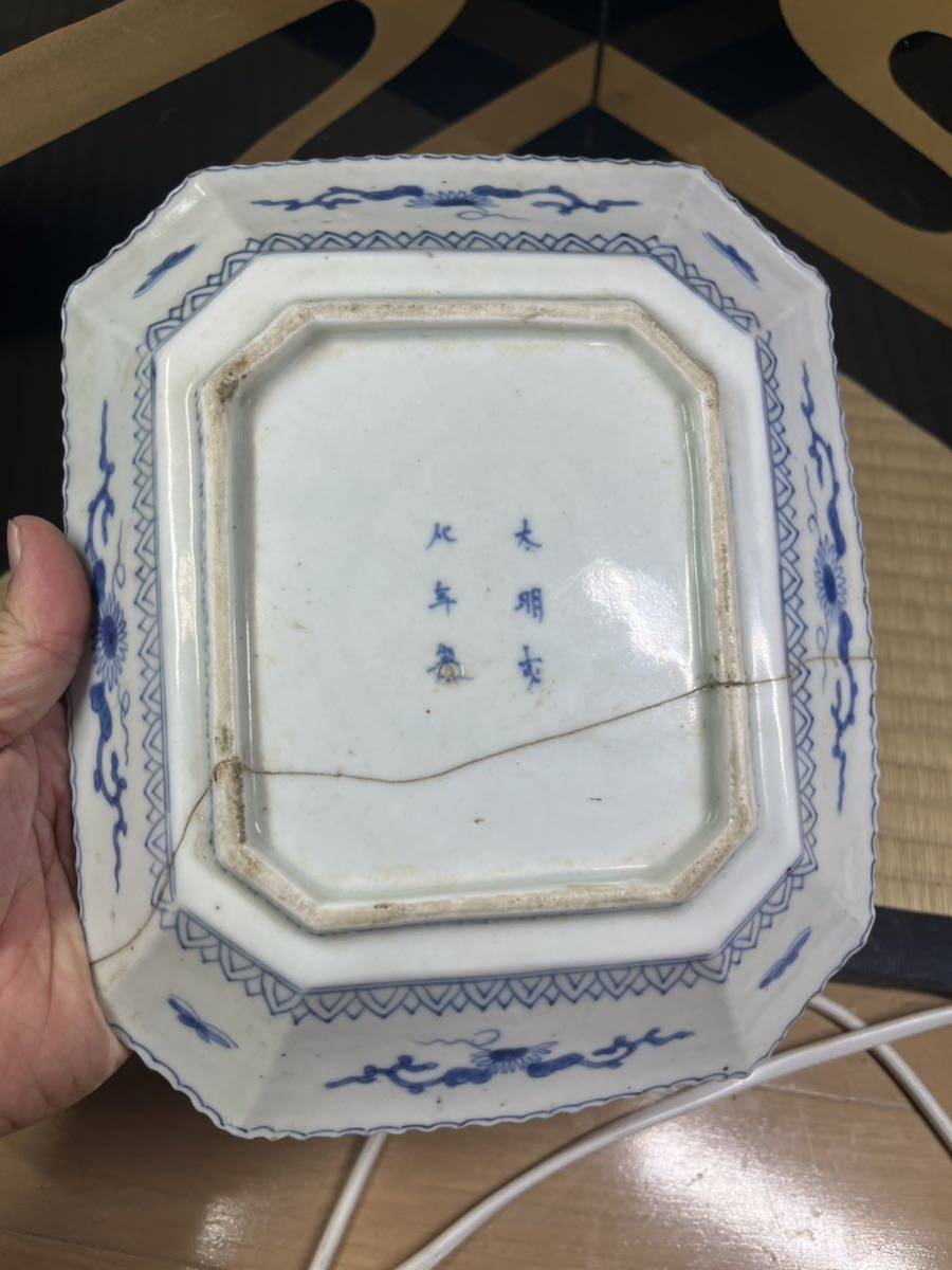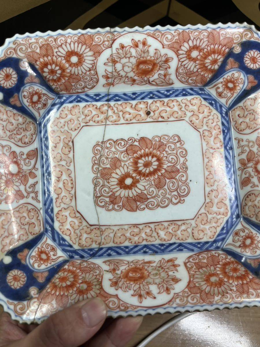 古伊万里 大明成化年製 色絵 四方皿 時代物 時代保証 参考品